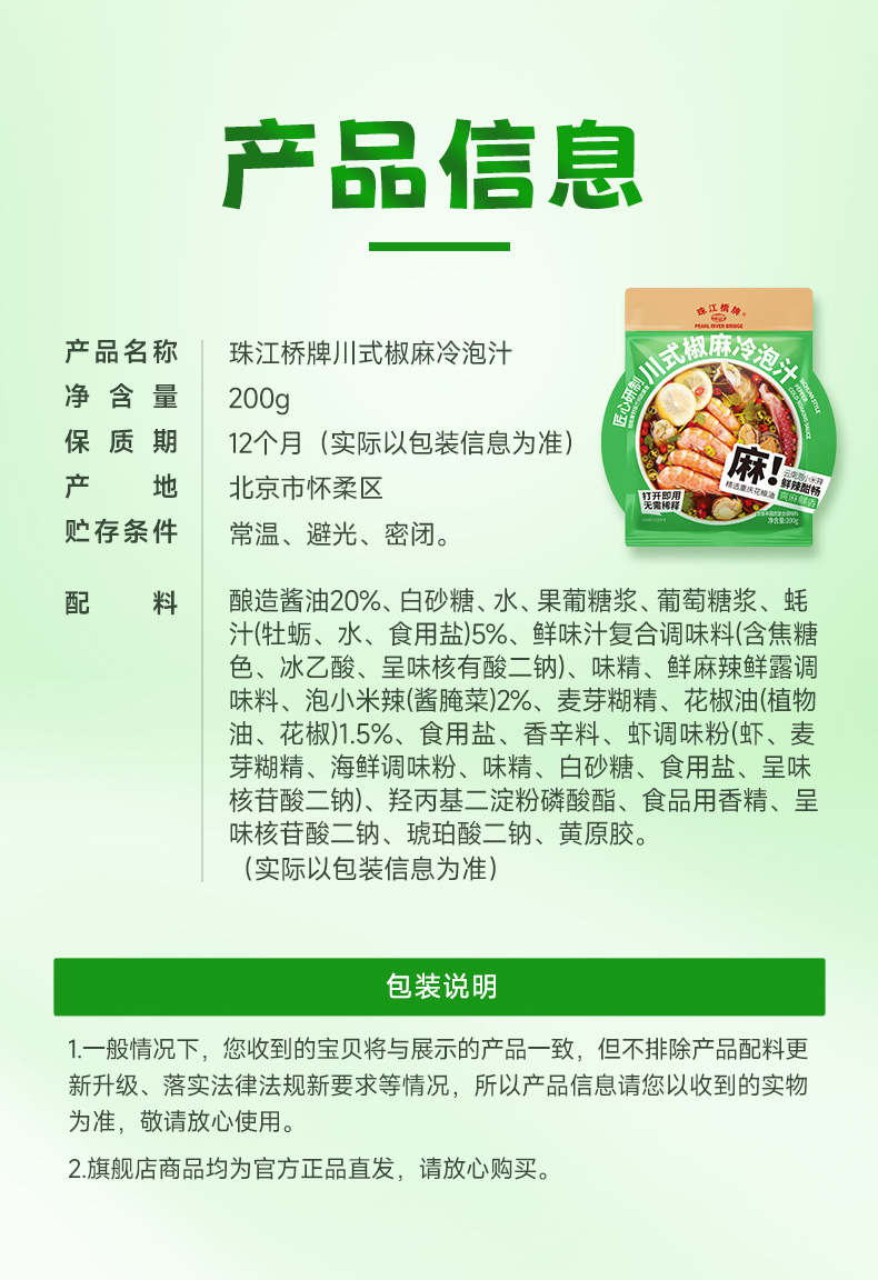 【新品】珠江桥牌 川式椒麻冷泡汁200gx1袋