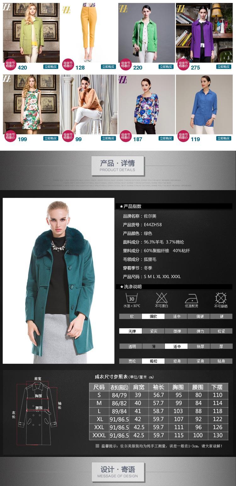 佐尔美冬装羊毛大衣女中长款修身毛呢外套毛领E44ZH58