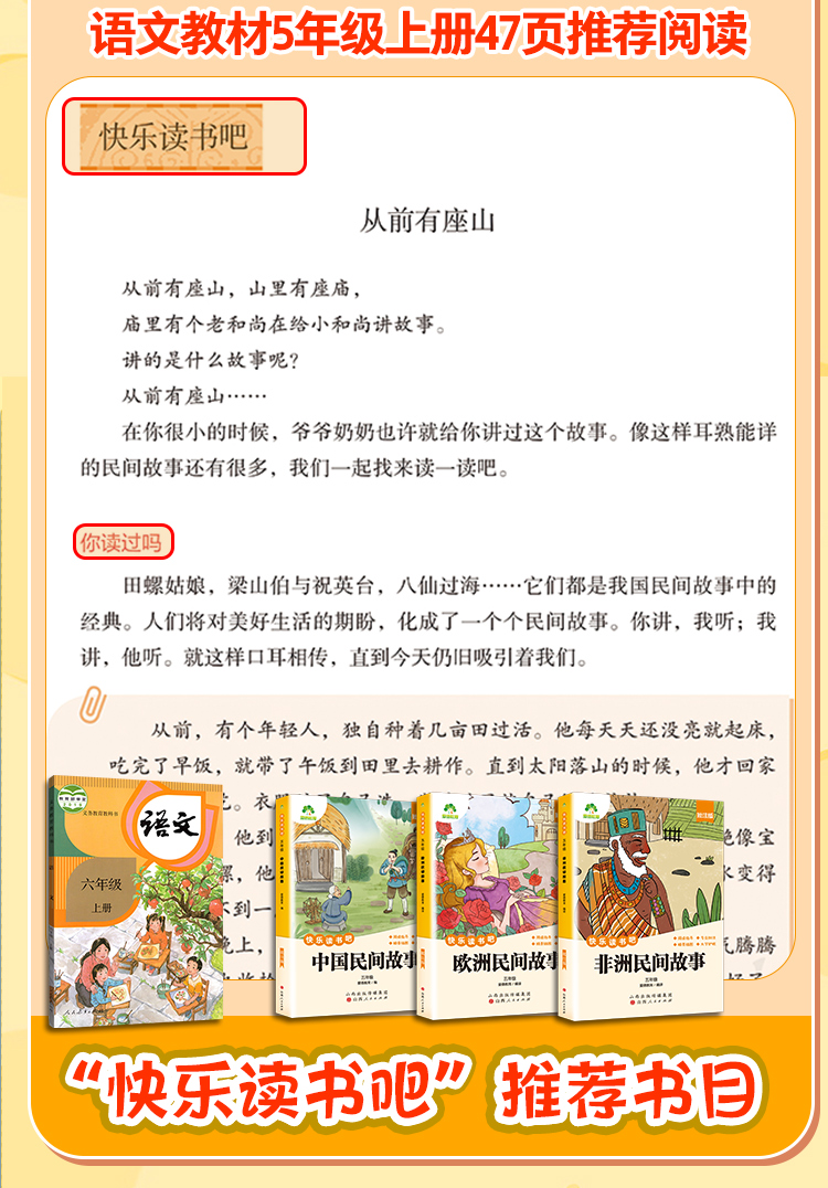 爱德少儿 快乐读书吧五年级 全套3册中国民间故事非洲欧洲必读课外书小学生部编人教版语文必读书目5上课外阅读书籍