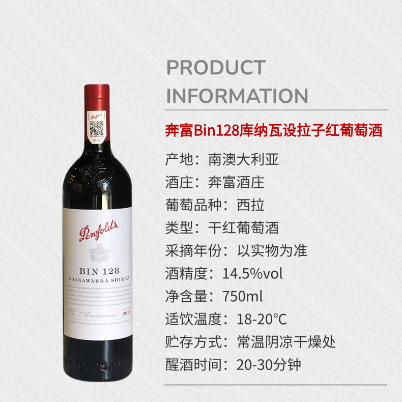 奔富Bin128库纳瓦设拉子干红葡萄酒