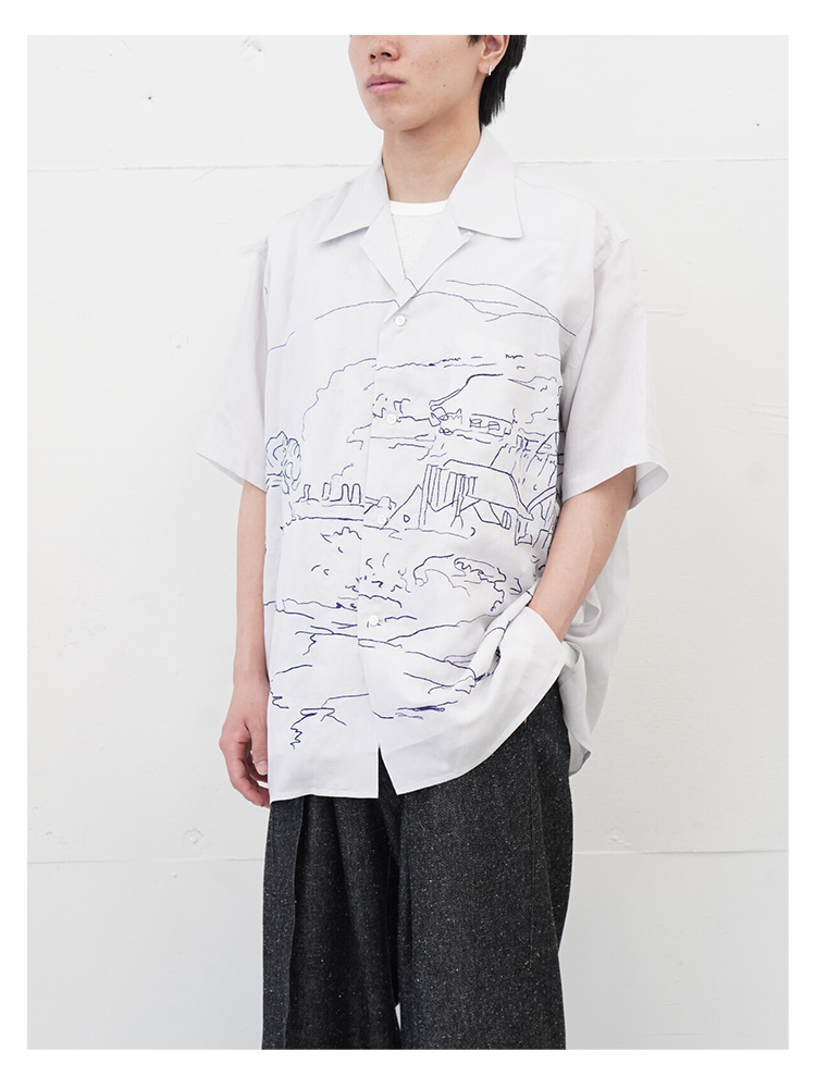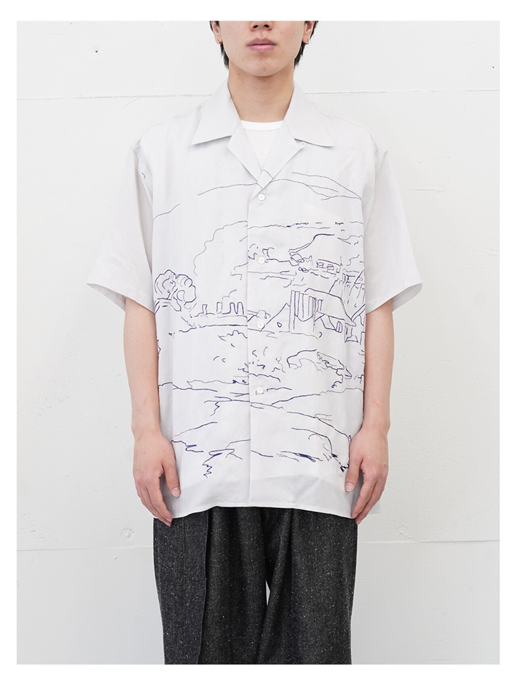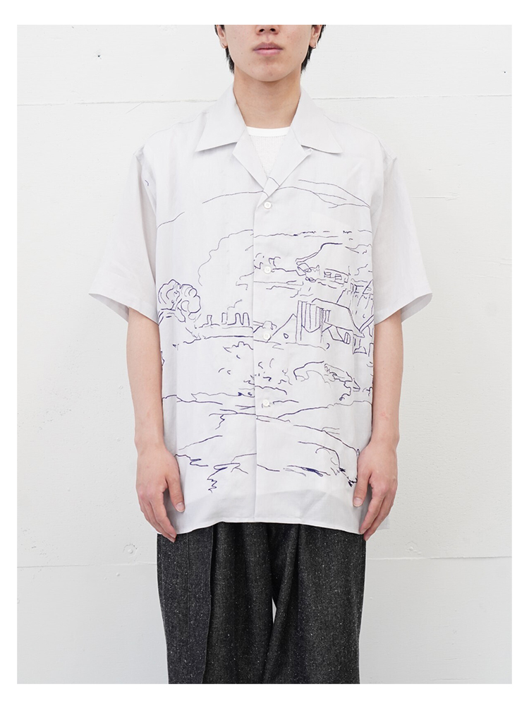 YOKE EMBROIDERY OPEN COLLAR 艺术家合作系列素描画刺绣短袖衬衫
