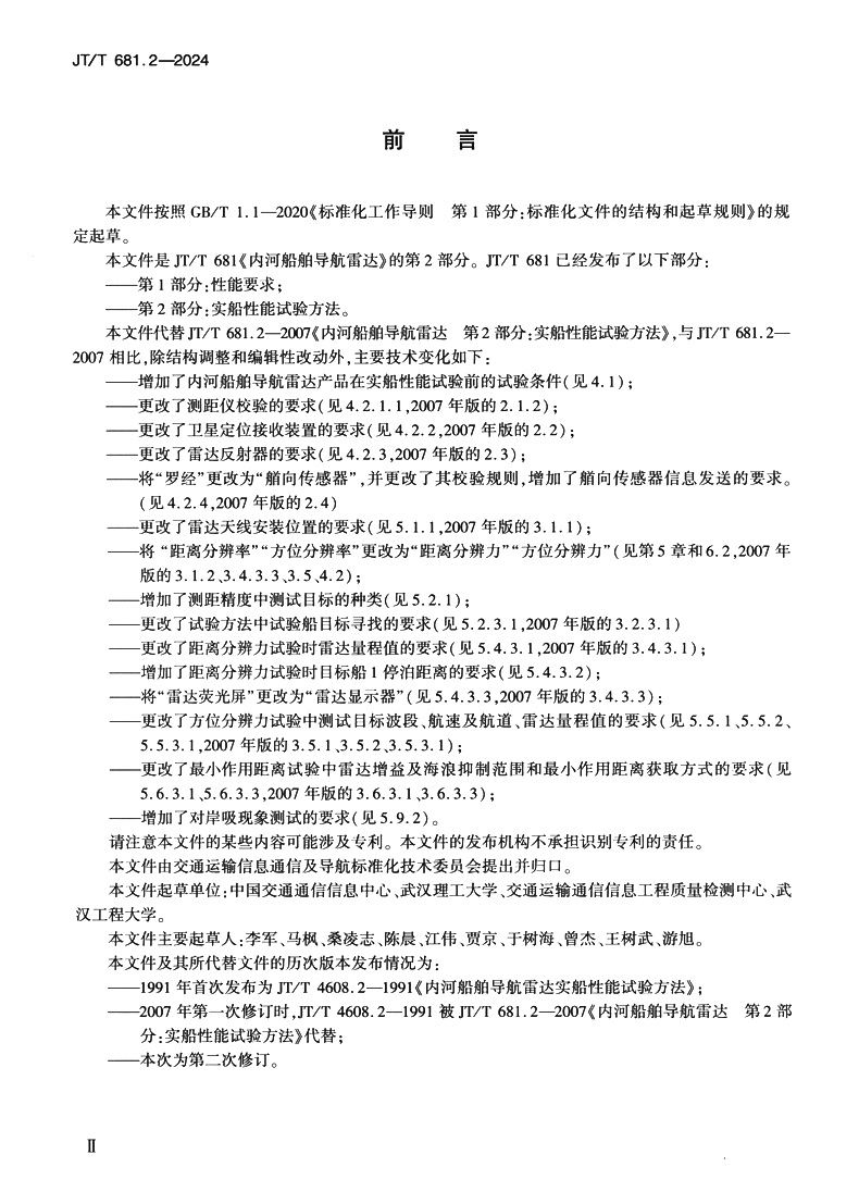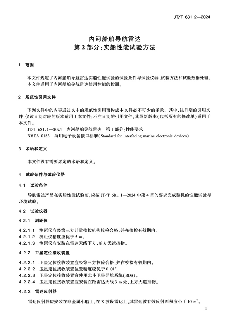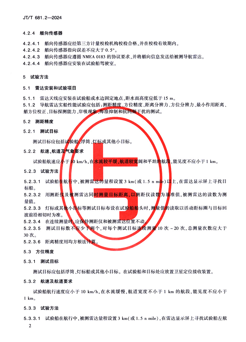 内河船舶导航雷达 第2部分:实船性能试验方法(JT/T 681.2—2024)