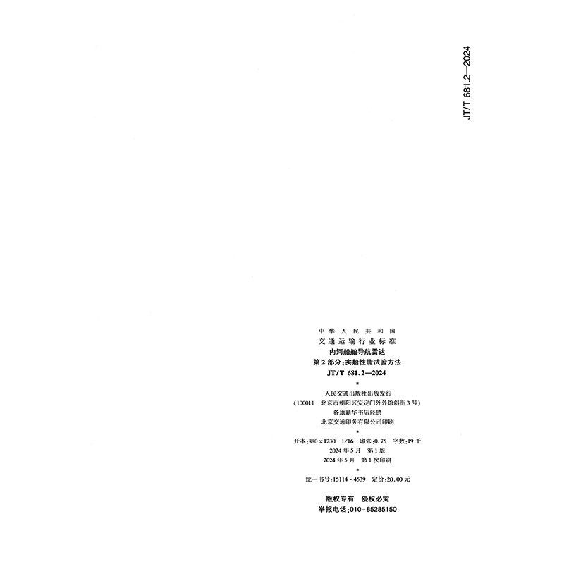 书名:内河船舶导航雷达 第2部分:实船性能试验方法(JT/T 681.2—2024)