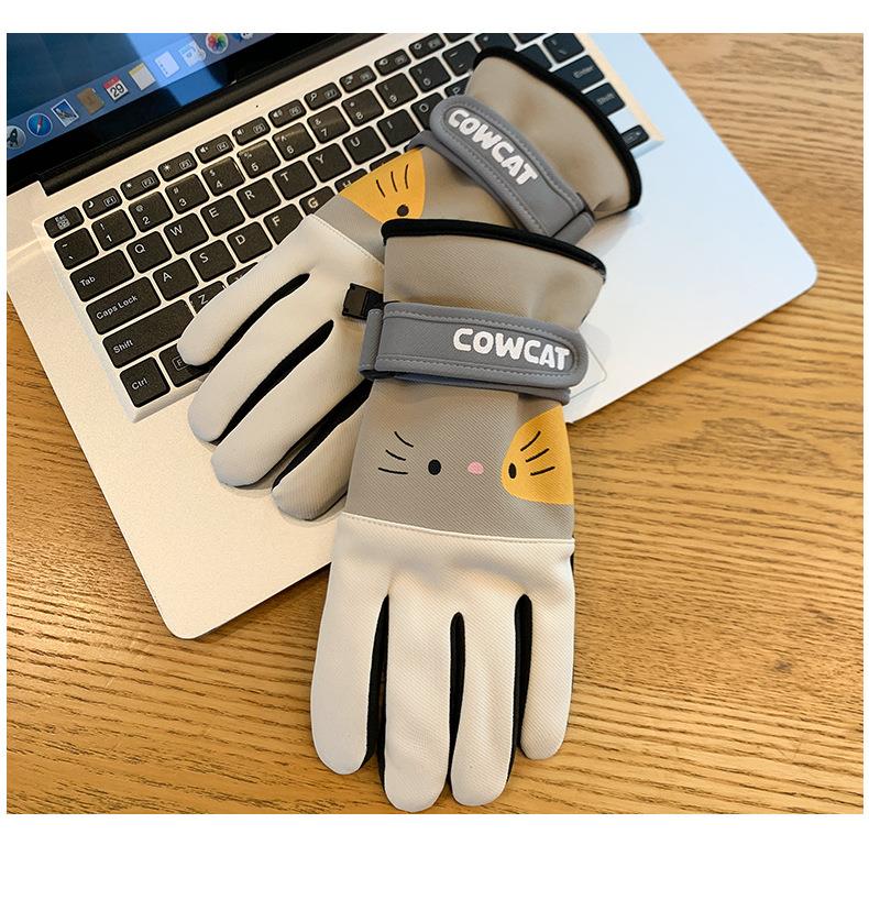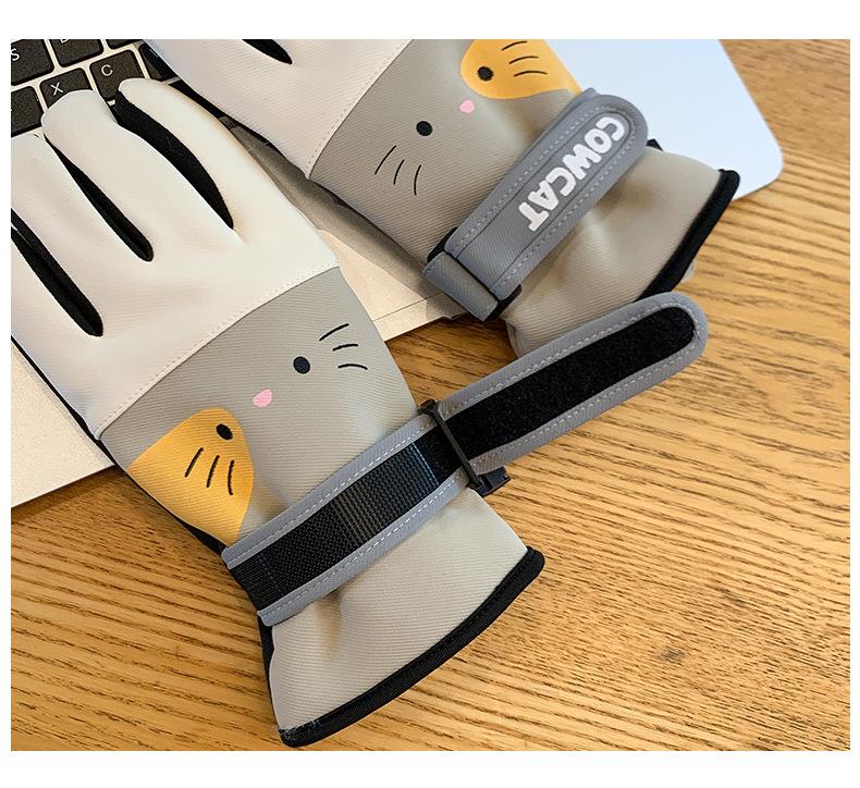 手套女士冬季新款可爱学生加绒加厚保暖骑行防风御寒麂皮绒棉手套