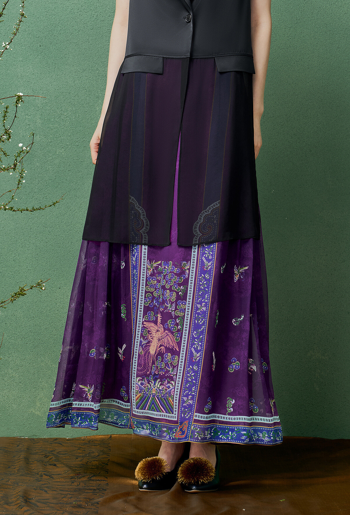 【林栖设计小店】真丝轻凉马面裙凤凰印花收腰新中式2025夏季新品半身裙女1952019