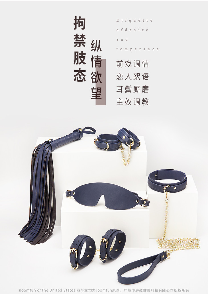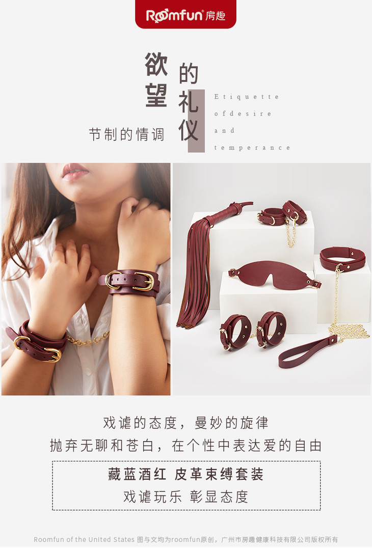roomfun房趣sm捆绑束缚皮革套装拘束调教手脚铐鞭拍眼罩项圈