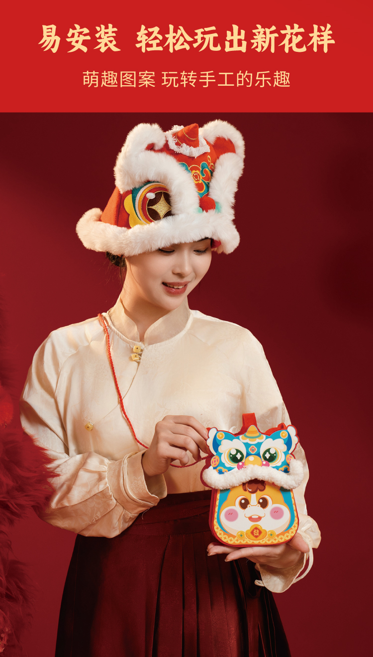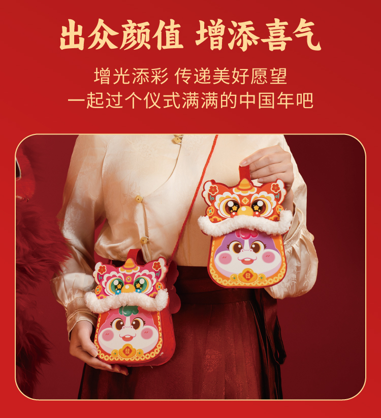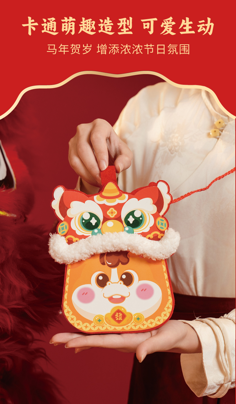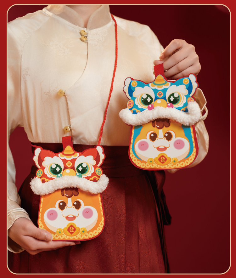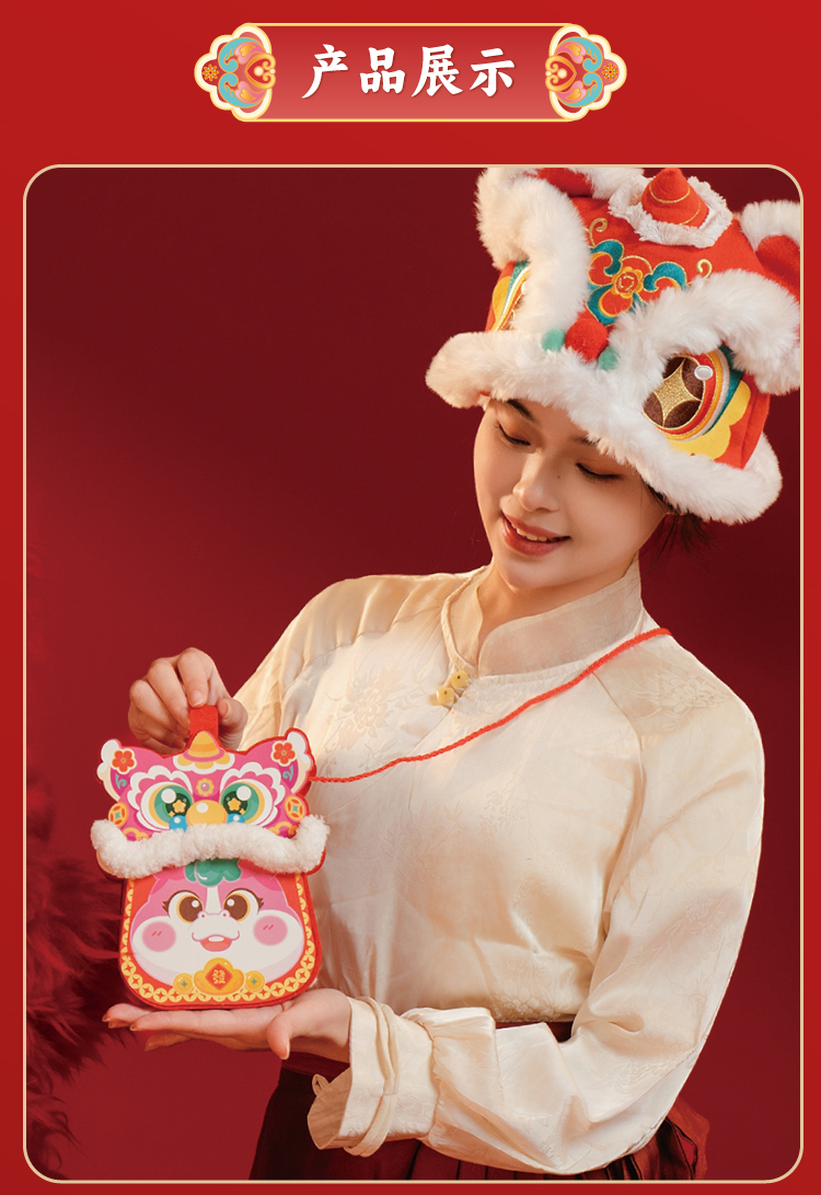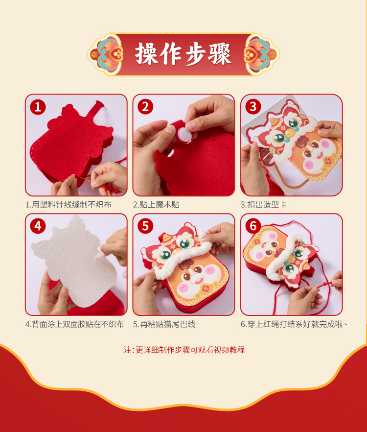 马年新年春节元旦不织布醒狮挎包,卡通萌趣造型,可装物品,容量大,安全方便,简单易做,可爱生动,不织布醒狮,增添浓浓节日氛围,,手工diy,亲子互动 儿童制作材料包,幼儿园包包