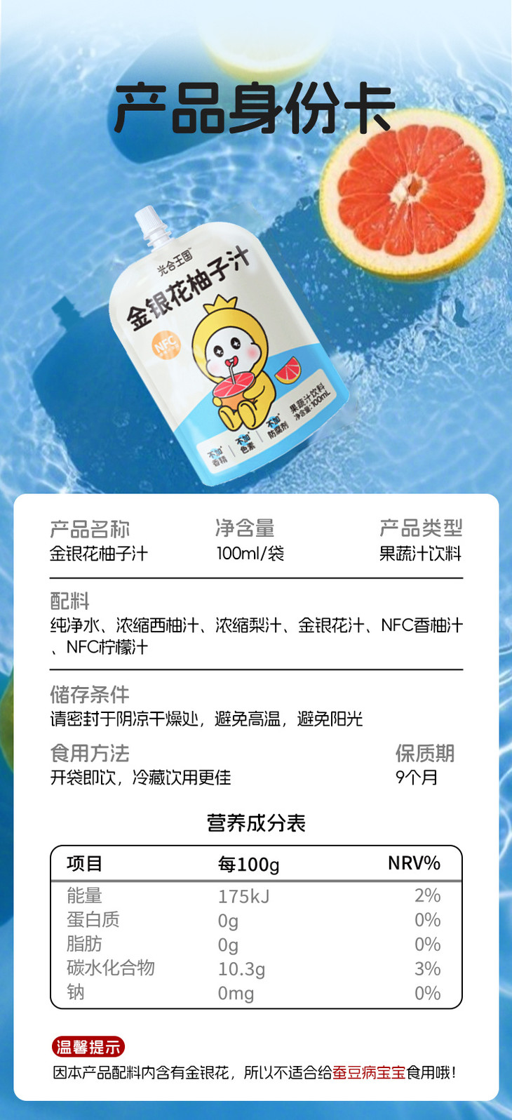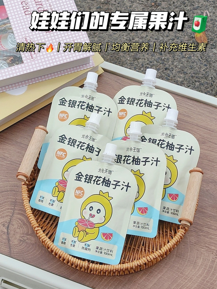 🌈必备“灭火器” |『光合王国金银花柚子汁』原味真果汁,0添加,每天一袋补充满满维生素C 喉咙干痒|食欲不振|均衡营养|健胃健腻 🍃一袋纯净四季滋养,守护孩子天然活力! 🔻口感清爽,酸酸甜甜,营养满分 🔻配料表巨干净,🉑放心给孩子喝 🔻纯水果植物去火,火遍妈妈圈的首选