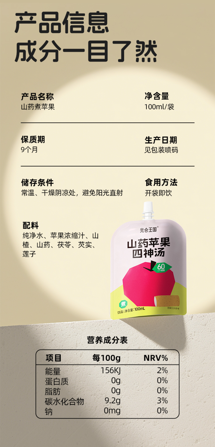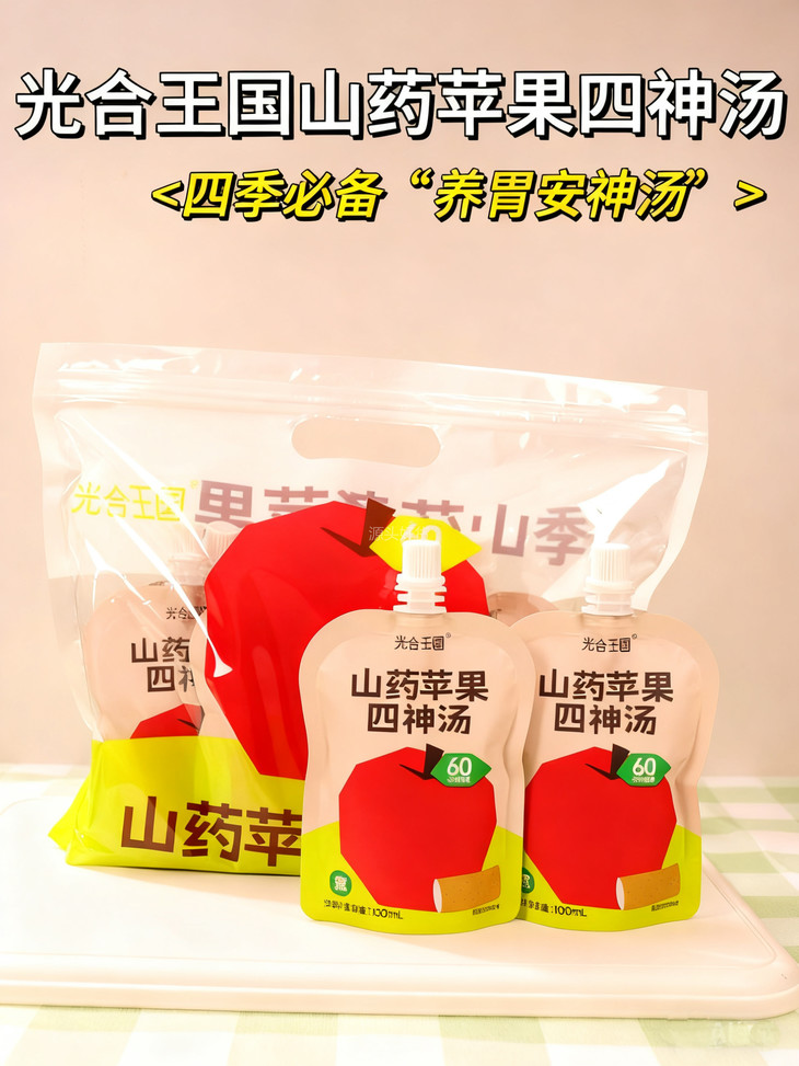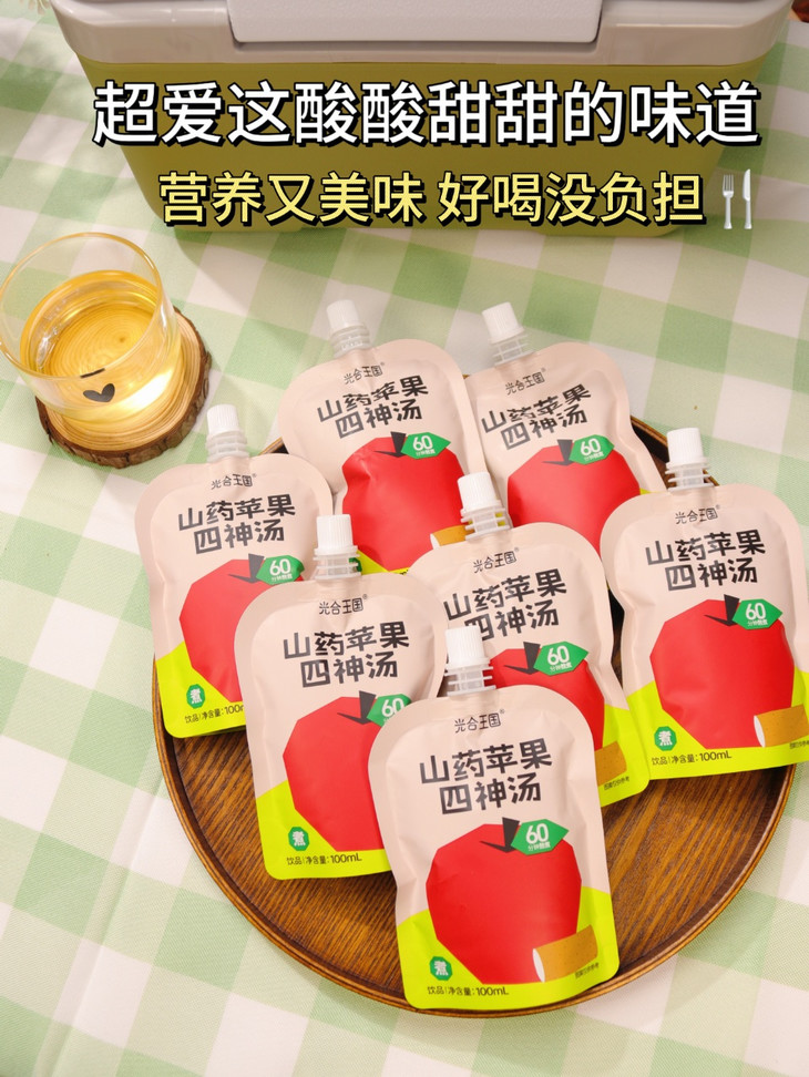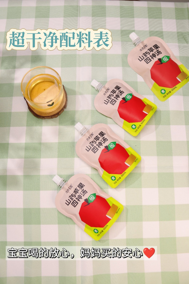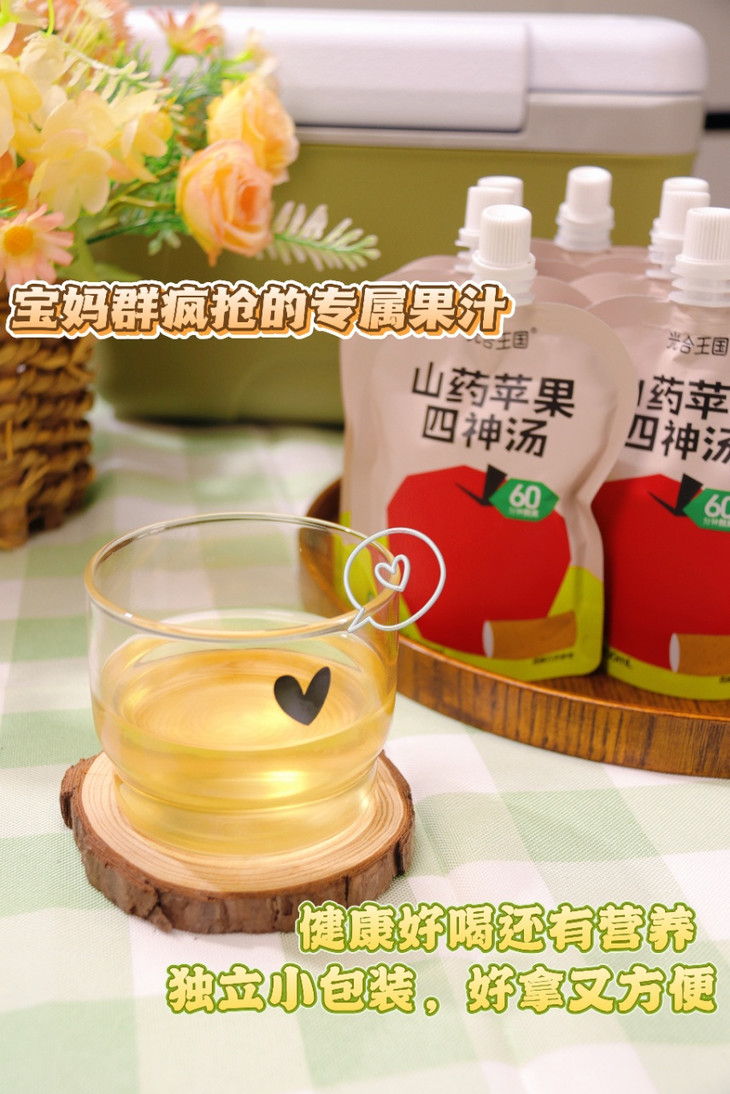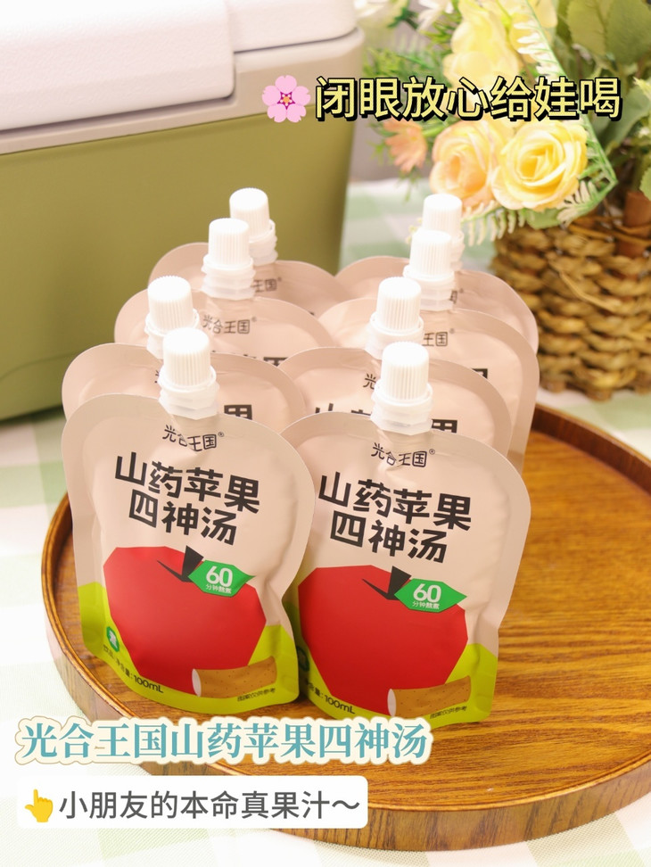 家里有1-12岁宝宝的一定要购买的补水果汁来咯~ 入口酸甜,小朋友咕咚咕咚就满足了日摄水量 对付不爱喝水的娃,直接拿捏! 『光合王国山药苹果四神汤』四季家中常备❗ ✅严选优质原料 ✅调和酸甜口味 ✅0防腐0添加剂 ✅60分钟慢熬煮 懂行的家长一看就疯狂下单 健脾祛湿,安神好梦,提高抵抗力,好处多多,孩子爱喝,家长放心❤