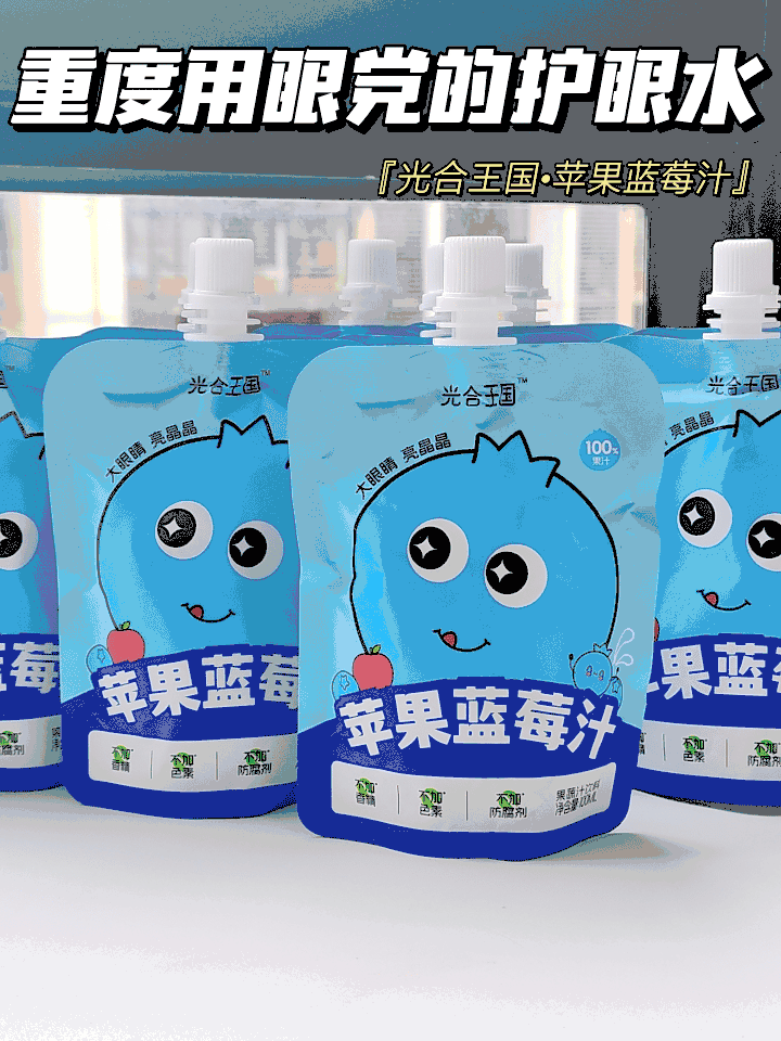 每天面对最多的都是手机、电脑🖥️、平板... 要知道这些电子产品看久了对眼睛可不大好 久而久之眼睛就会干涩、疲惫、干痒等问题 再不注意就要带眼镜👓变“四眼仔”咯 所以日常一定要多爱护我们的眼睛👀 给重度用眼党们带来:👉光合王国·苹果蓝莓汁❗ 花青素➕叶黄素都🔥𝑪𝒉𝒂𝒐爆棚的护眼水 吨吨吨喝下去让你喝出𝑩𝒍𝒊𝒏𝒈𝑩𝒍𝒊𝒏𝒈✨的星星眼~