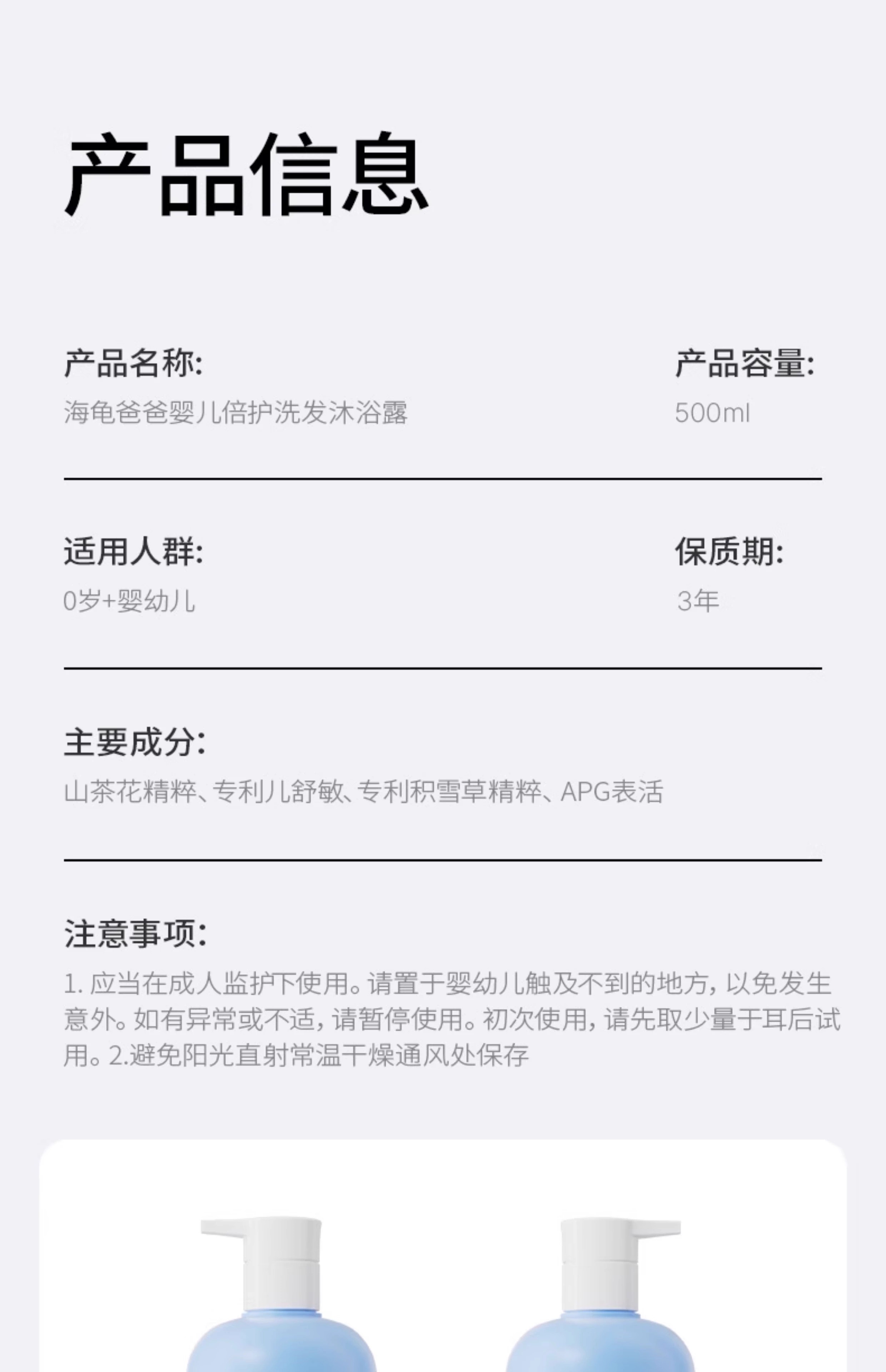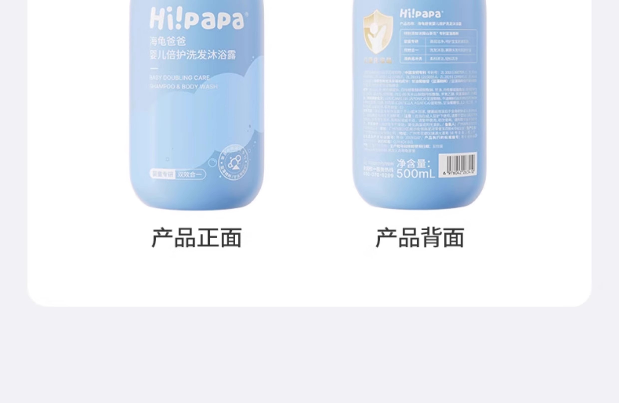 【品牌直发】(新生儿可用)Hi!papa海龟爸爸儿童沐浴露洗发水二合一500ml新生儿宝宝专用沐浴乳婴儿GP