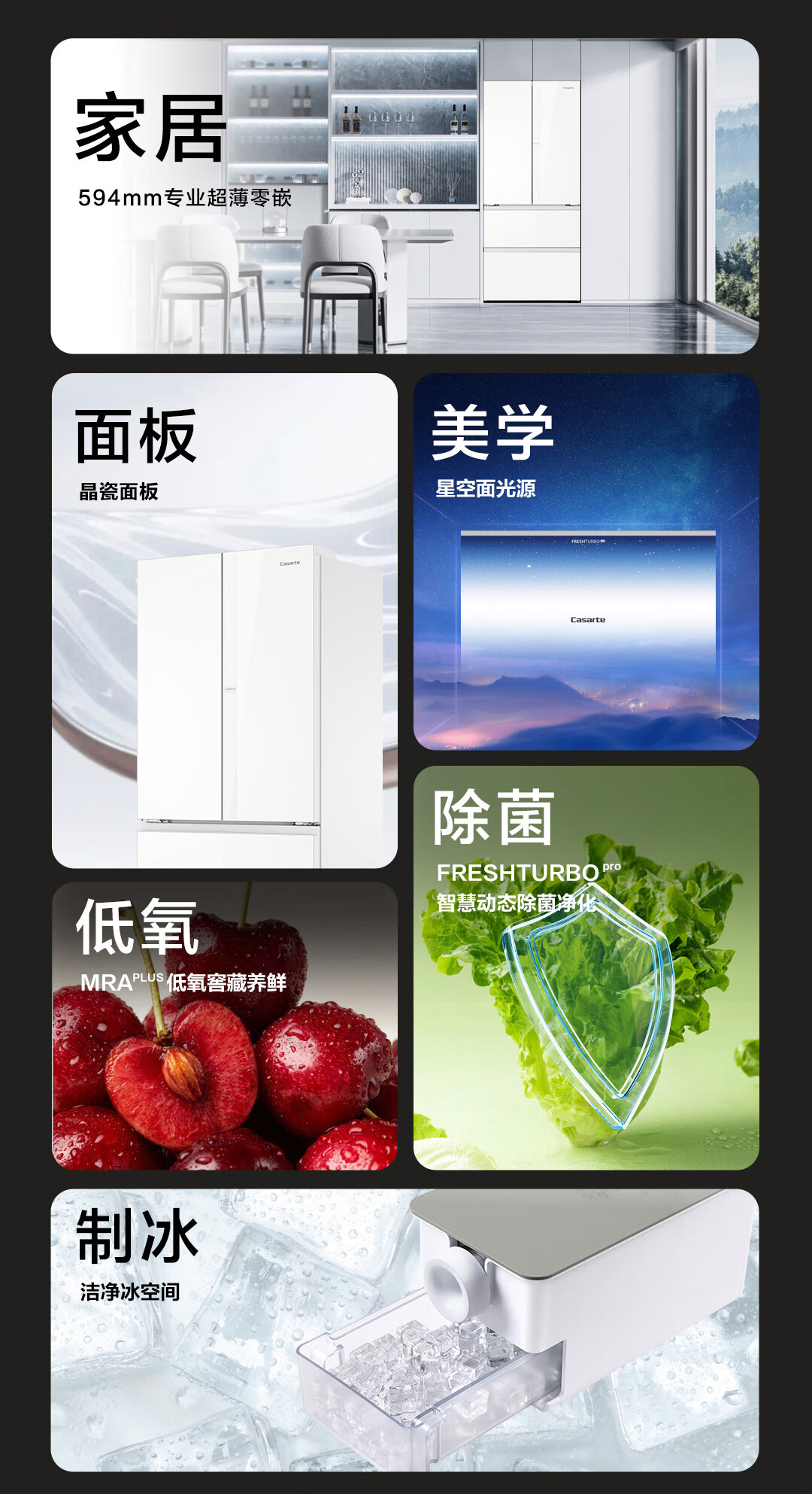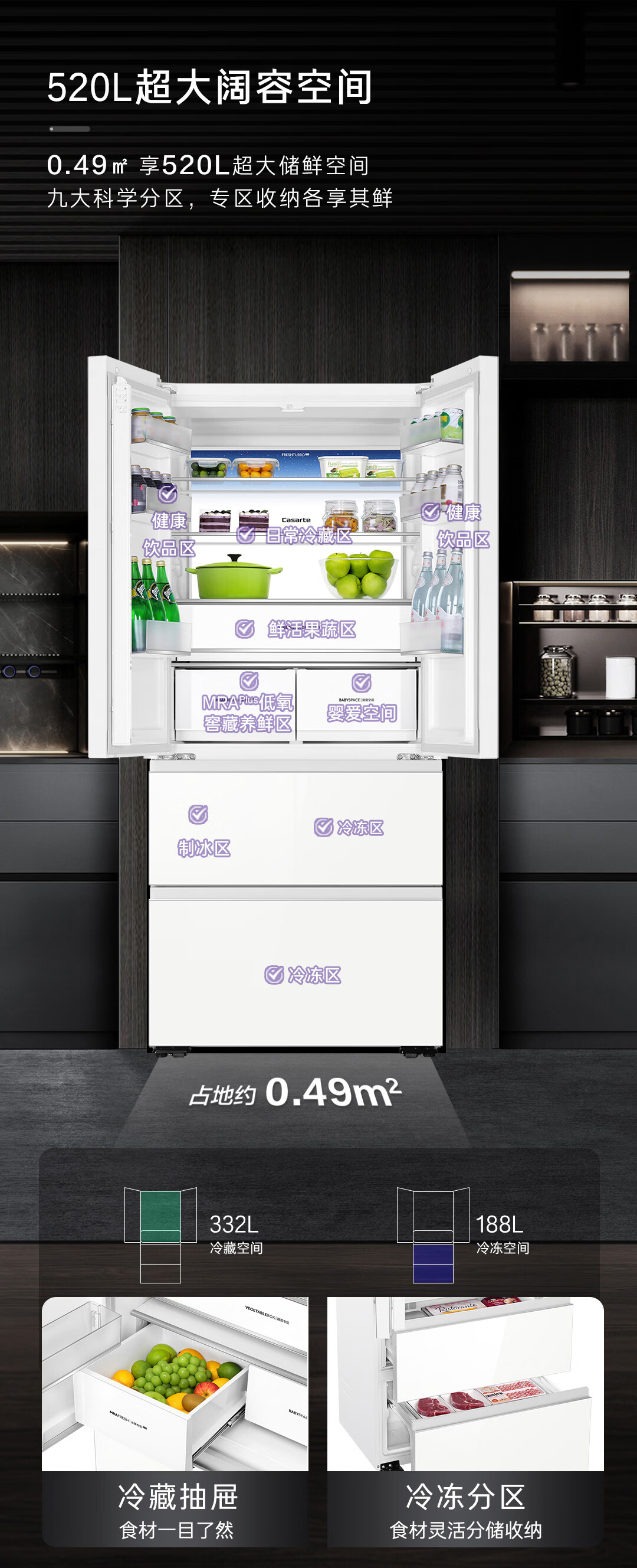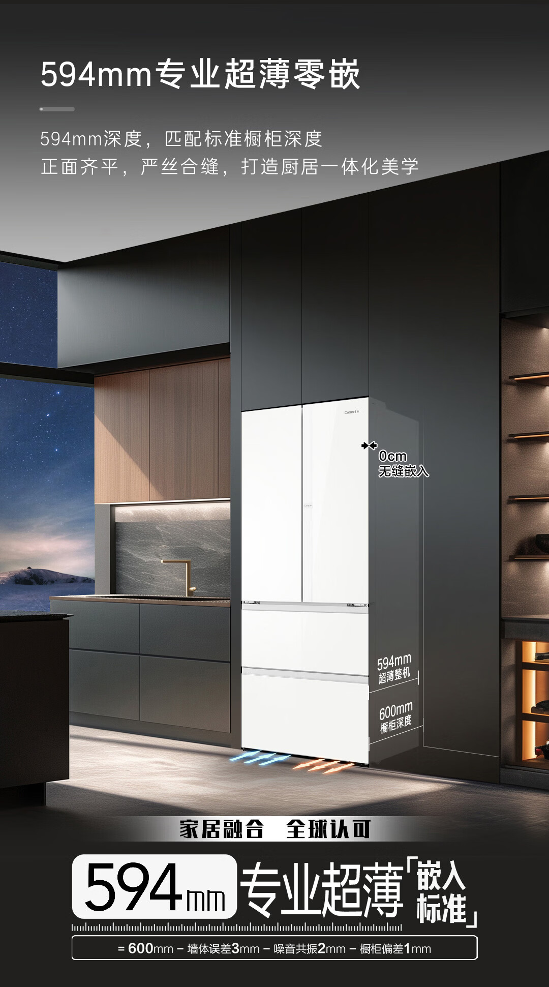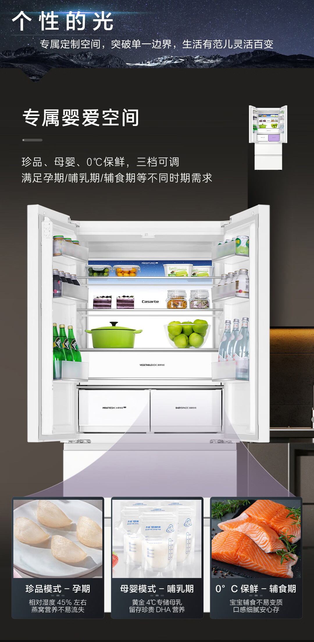 卡萨帝(Casarte)520升法式多门冰箱双系统冷藏冷冻双重除菌净化零距离自由嵌入式一级能效 BCD-520WGCFDM4G6U1