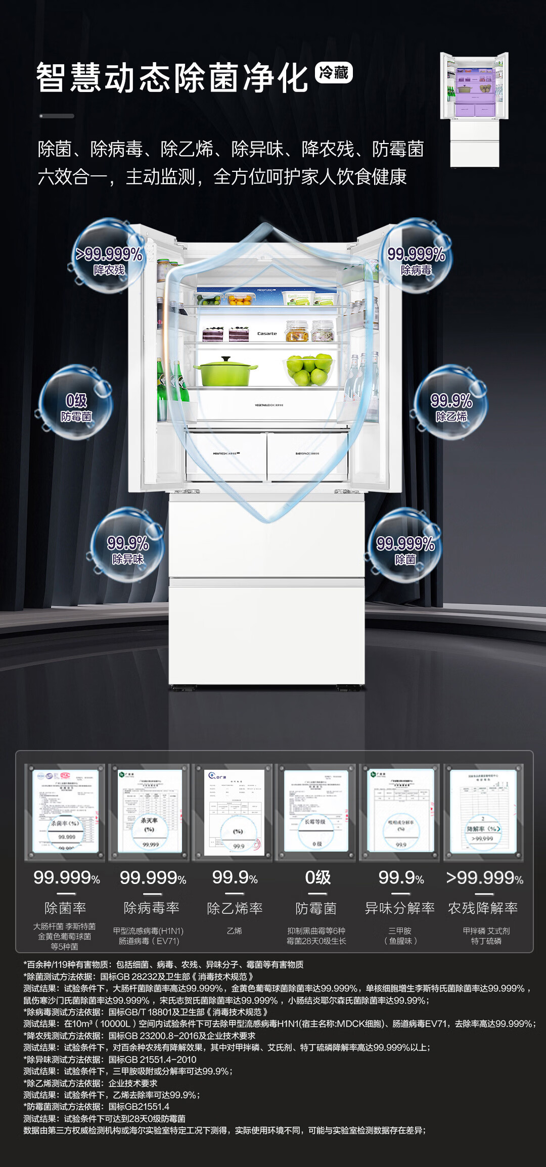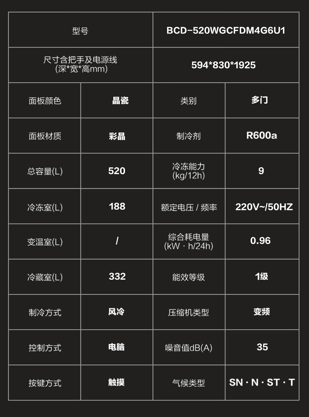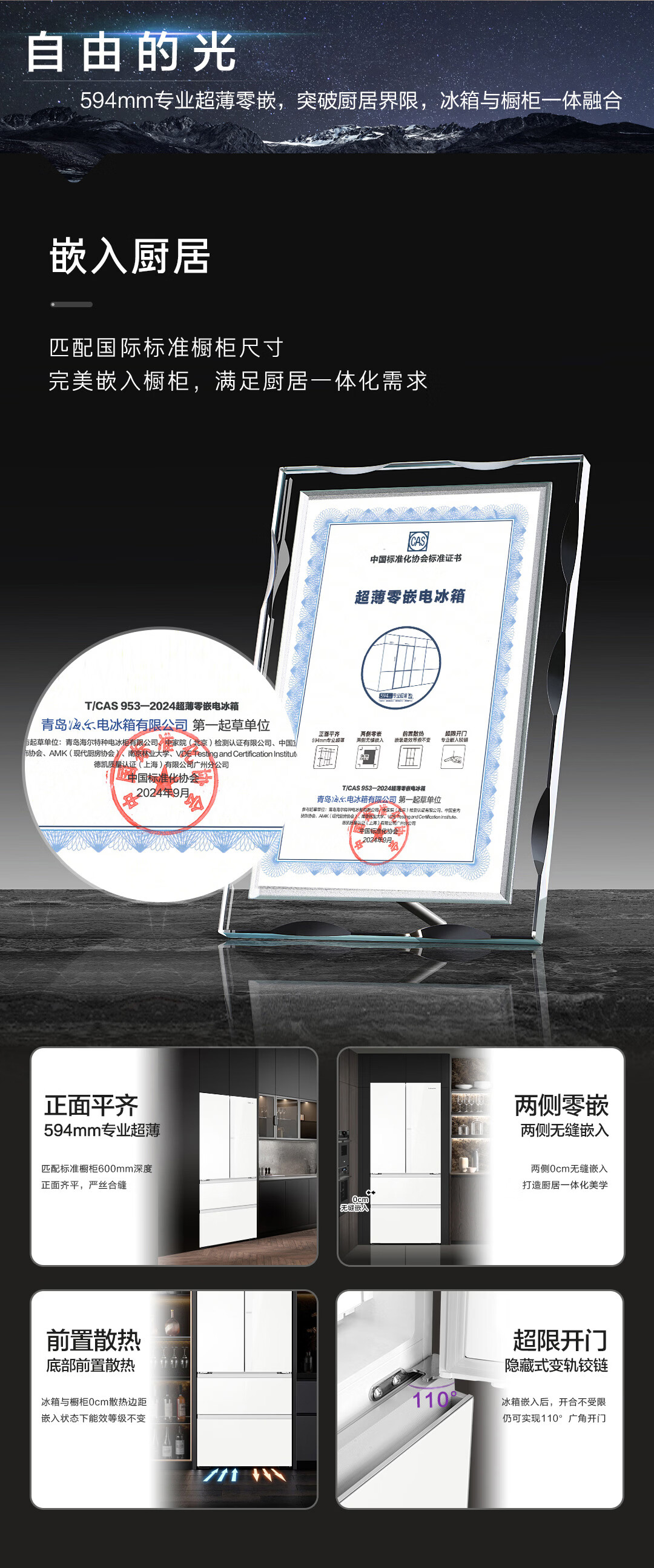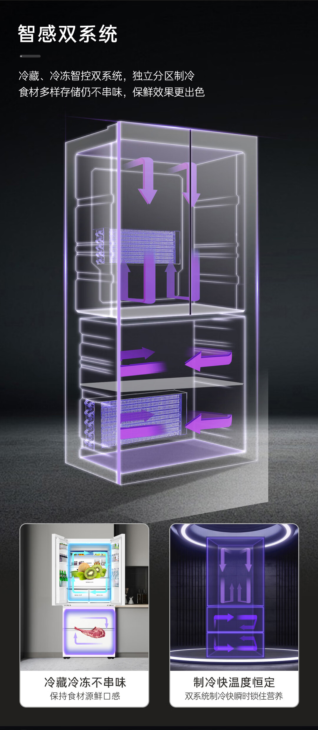 卡萨帝(Casarte)520升法式多门冰箱双系统冷藏冷冻双重除菌净化零距离自由嵌入式一级能效 BCD-520WGCFDM4G6U1