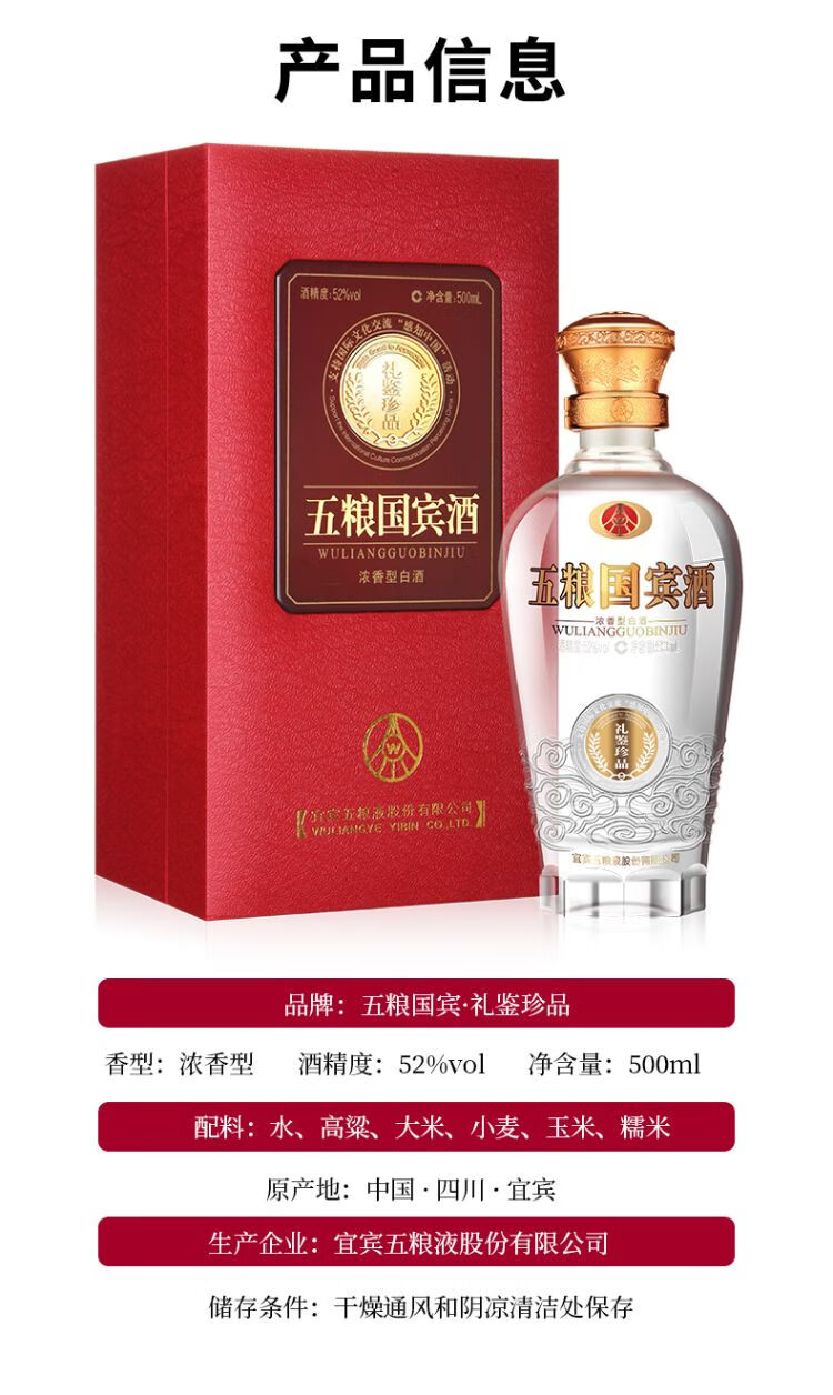 (万)52°五粮国宾酒500ml/瓶