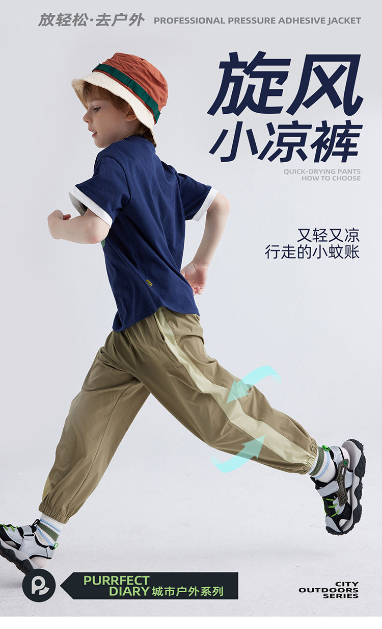 【旋风小凉裤 轻量速干】儿童侧边拼色休闲裤 PXK2414