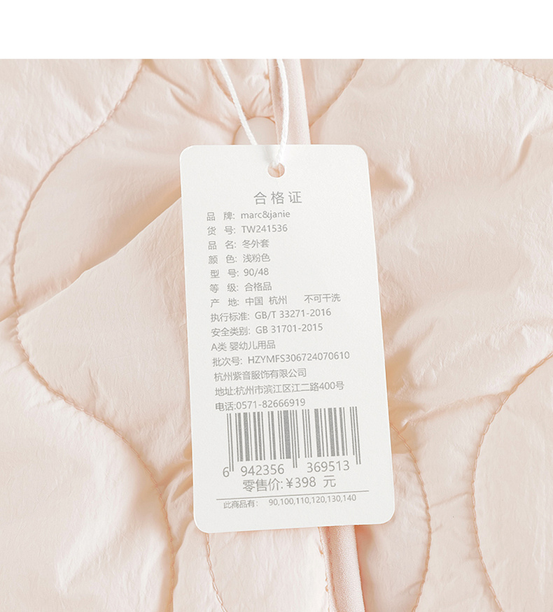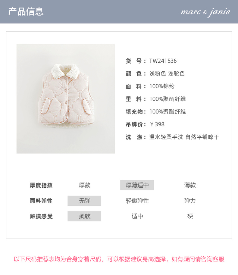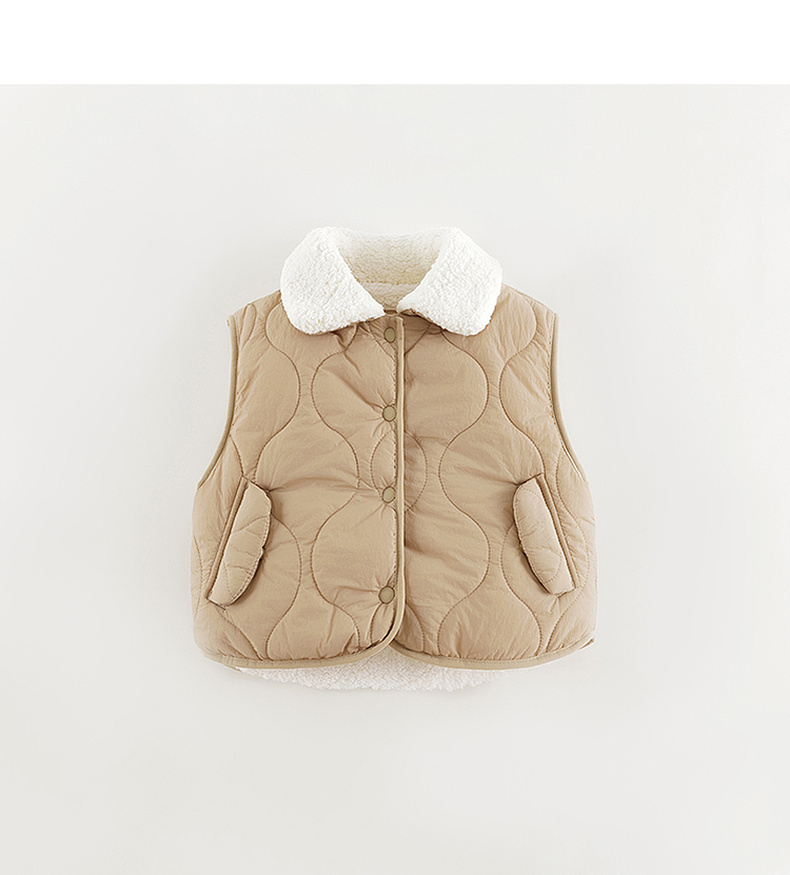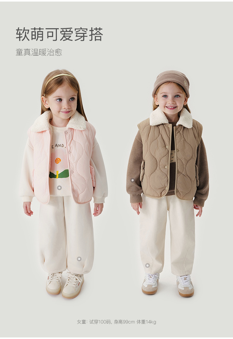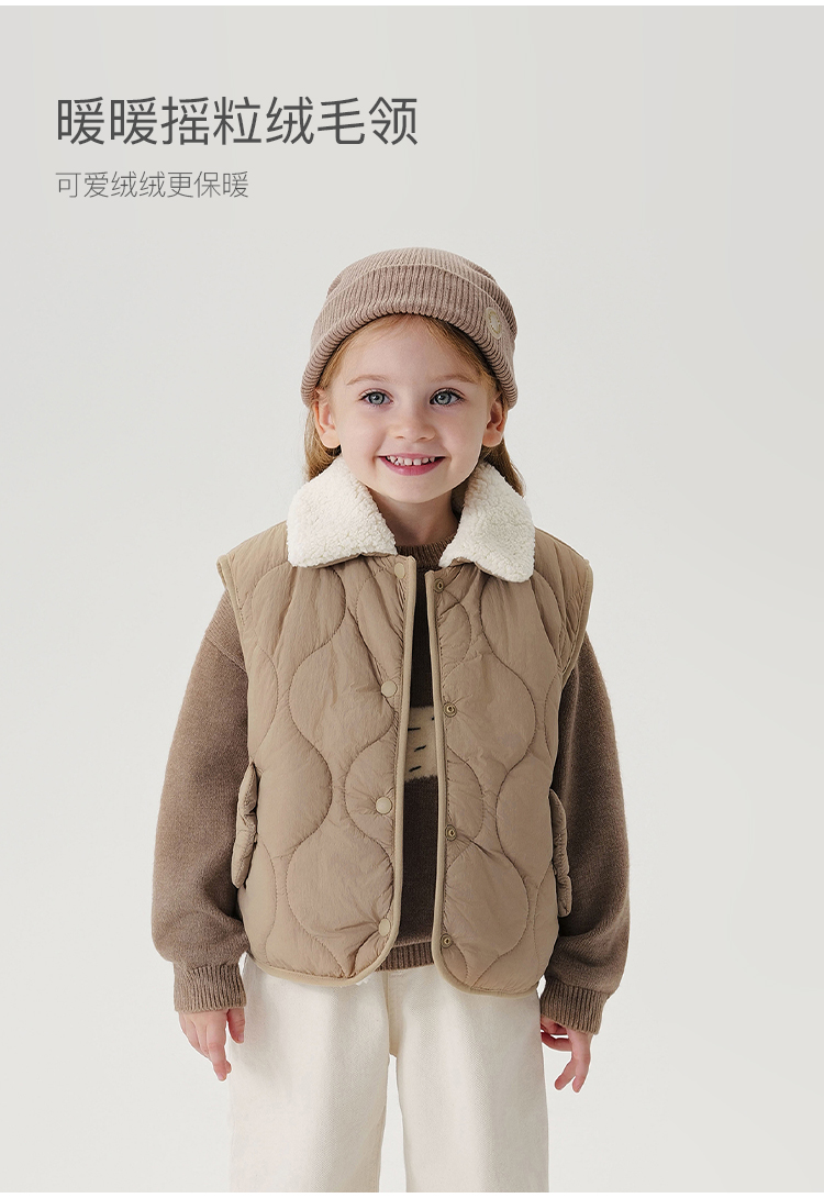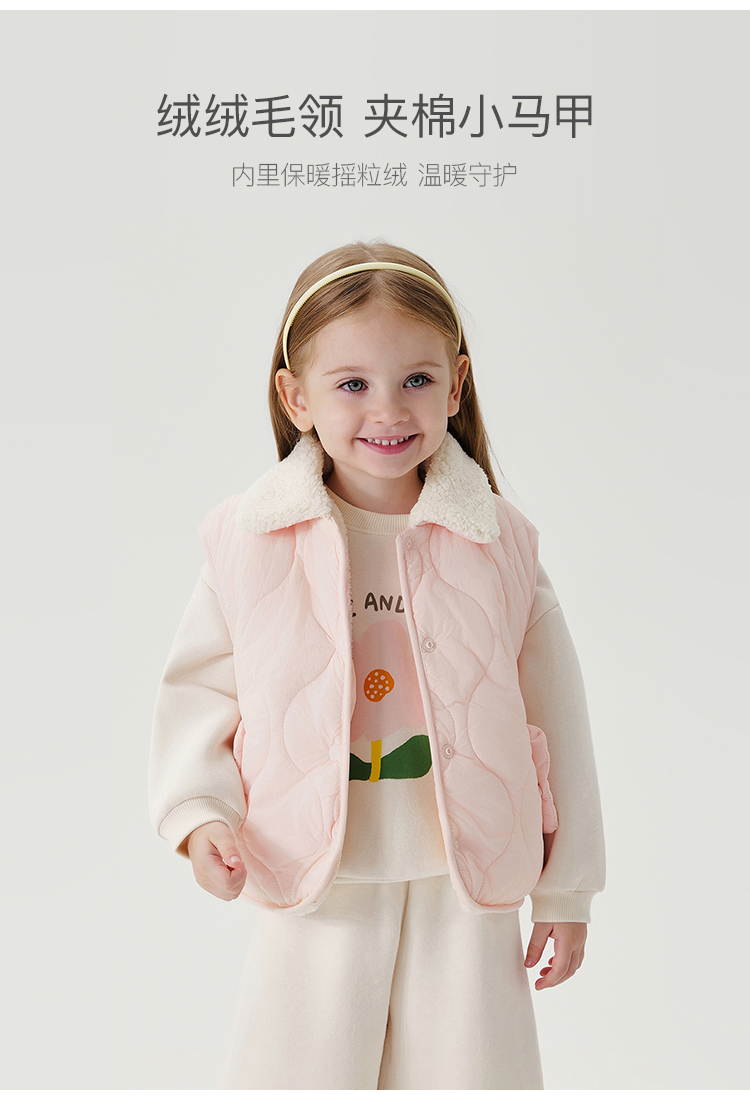 马克珍妮女童绒绒熊耳朵夹棉保暖马甲宝宝2024年冬装新款241536