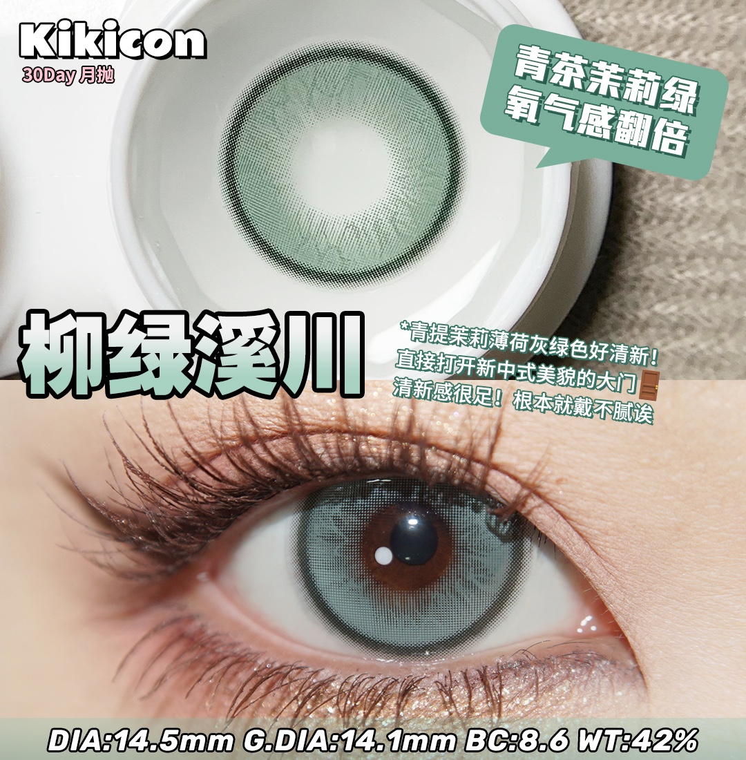 kikicon 月抛 柳绿溪川 直径14.5mm 着色14.1mm