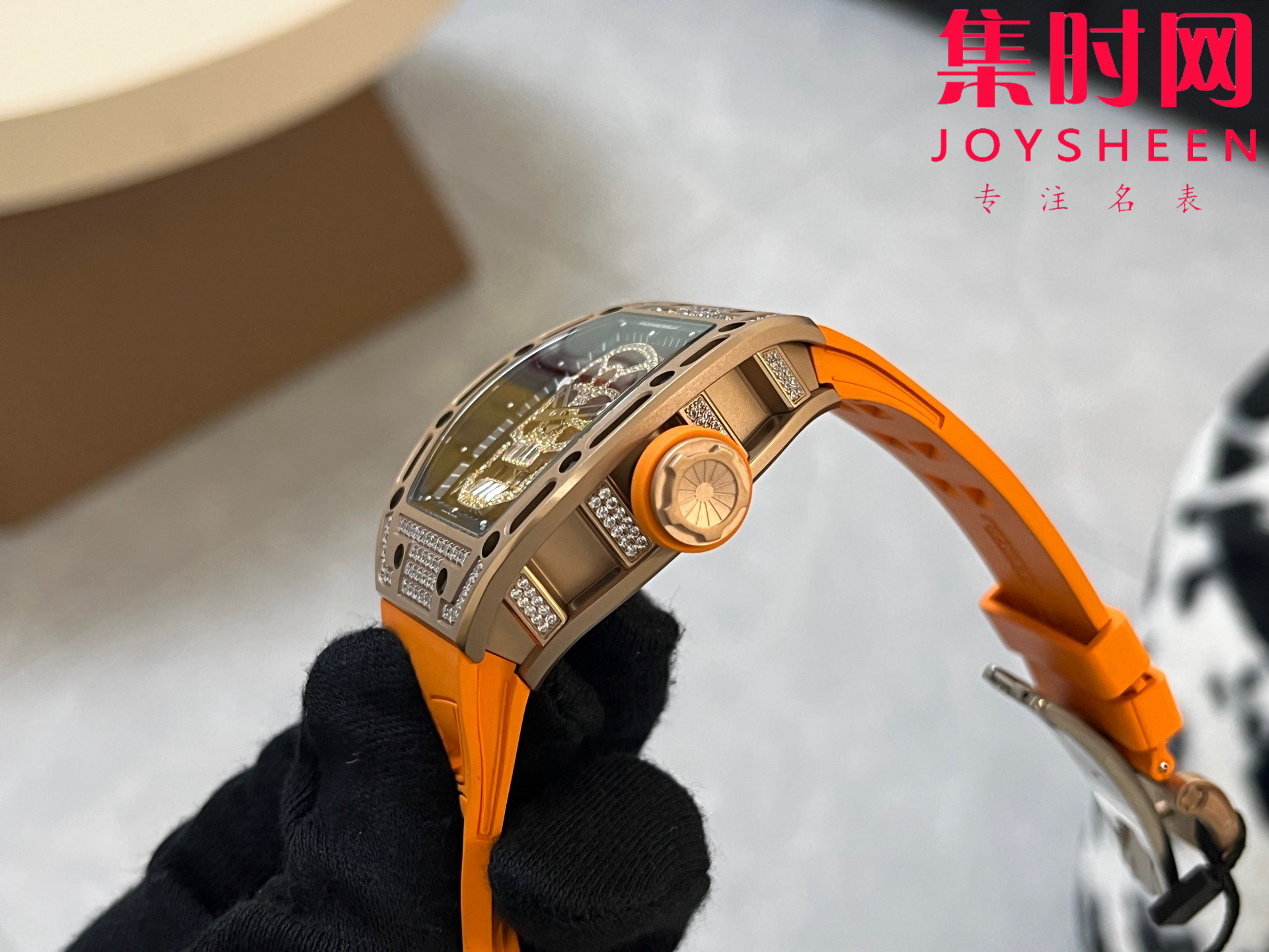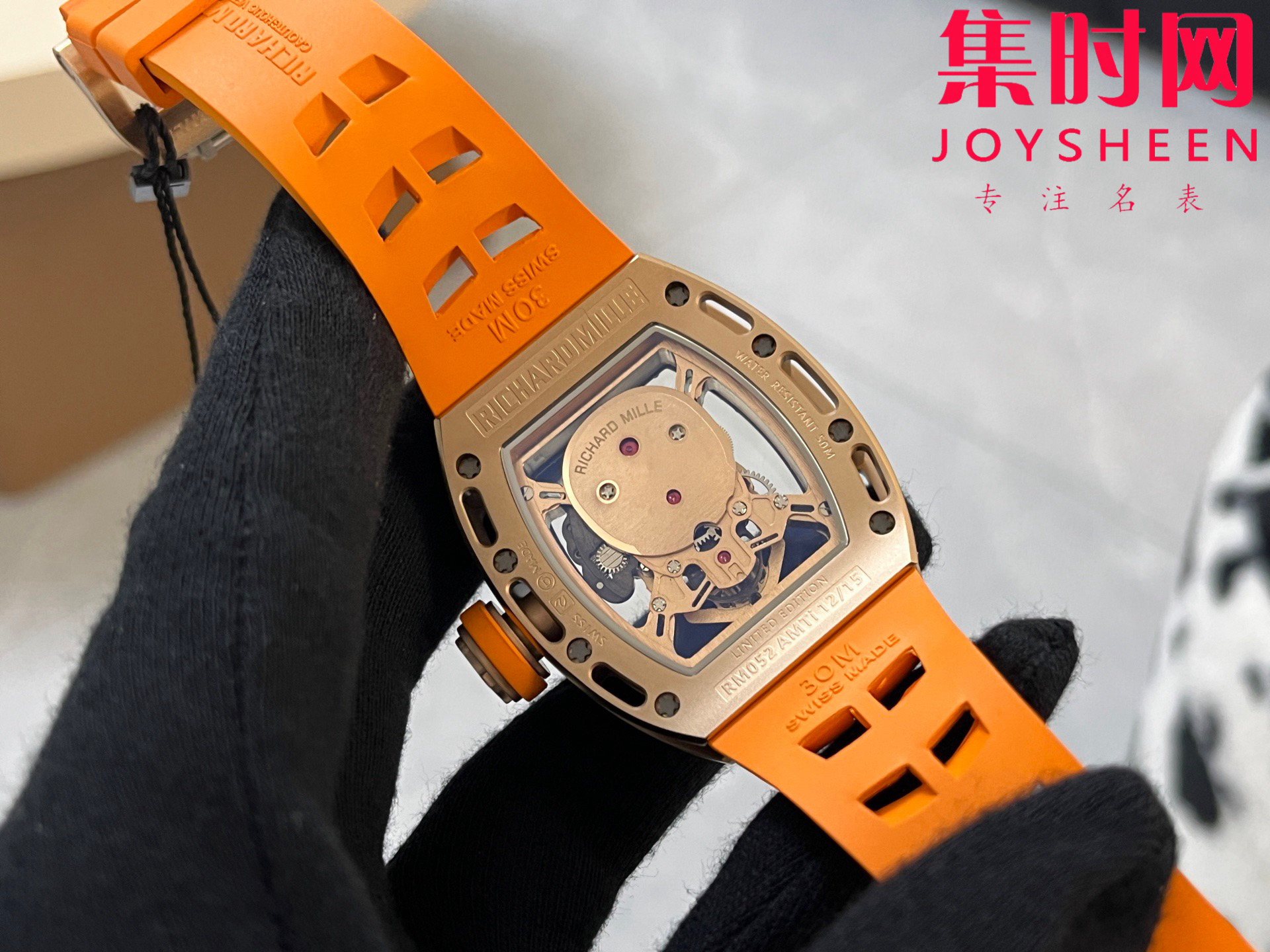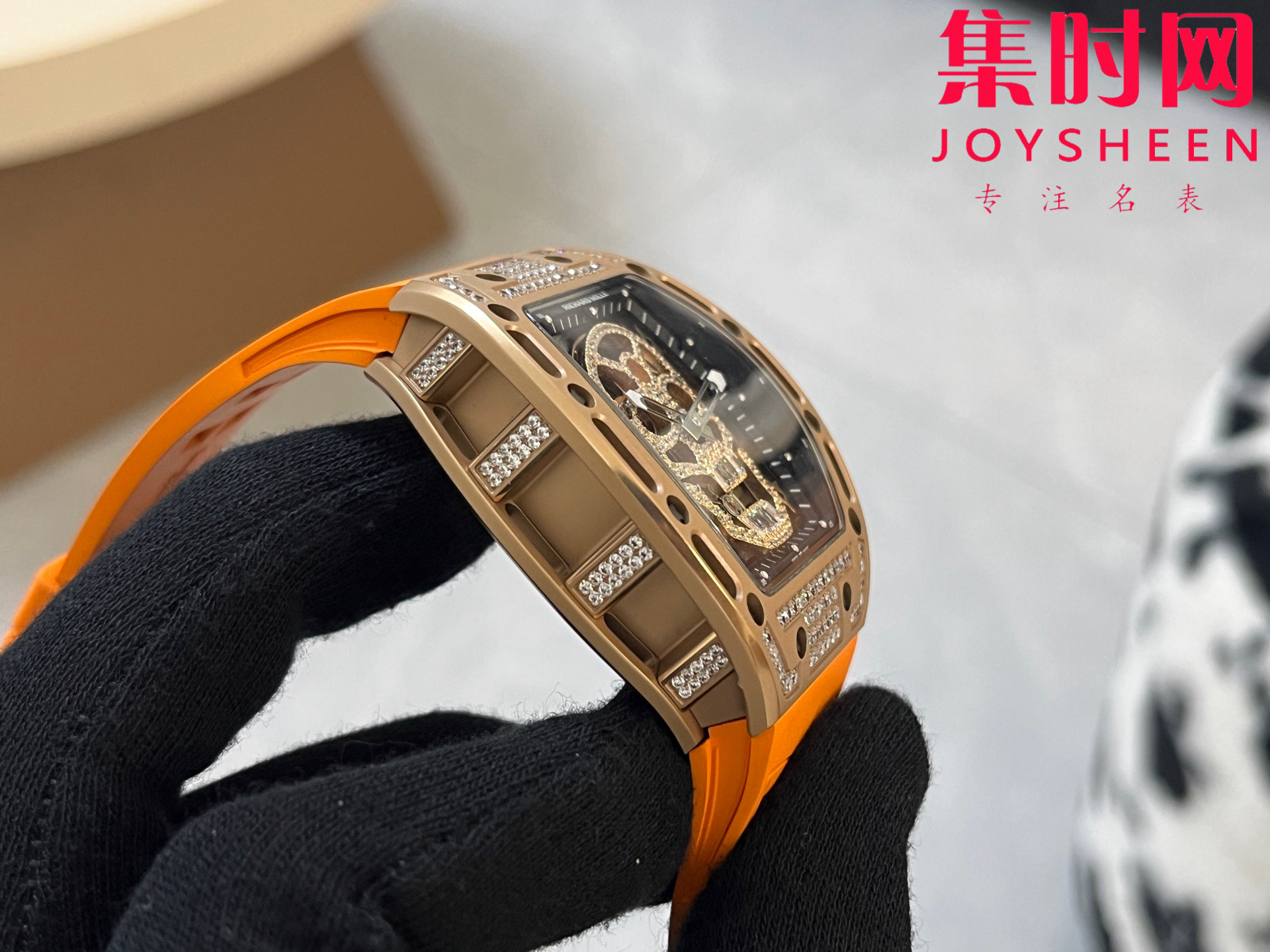 理查德米勒 RM052骷髅满天星 钻圈款 男士腕表 搭载定制一体手动上链机械机芯,鬼头经典传奇 镂空骷髅头腕表.骷髅头轮廓突出,造型霸气不羁,具有震撼人心的魅力。搭配艳耀色彩的橡轻便表带,更拉风,更前卫。腕间搭上鲜艳的表款,是不是很吸睛?表壳尺寸:43mmx50mm 真实展现!