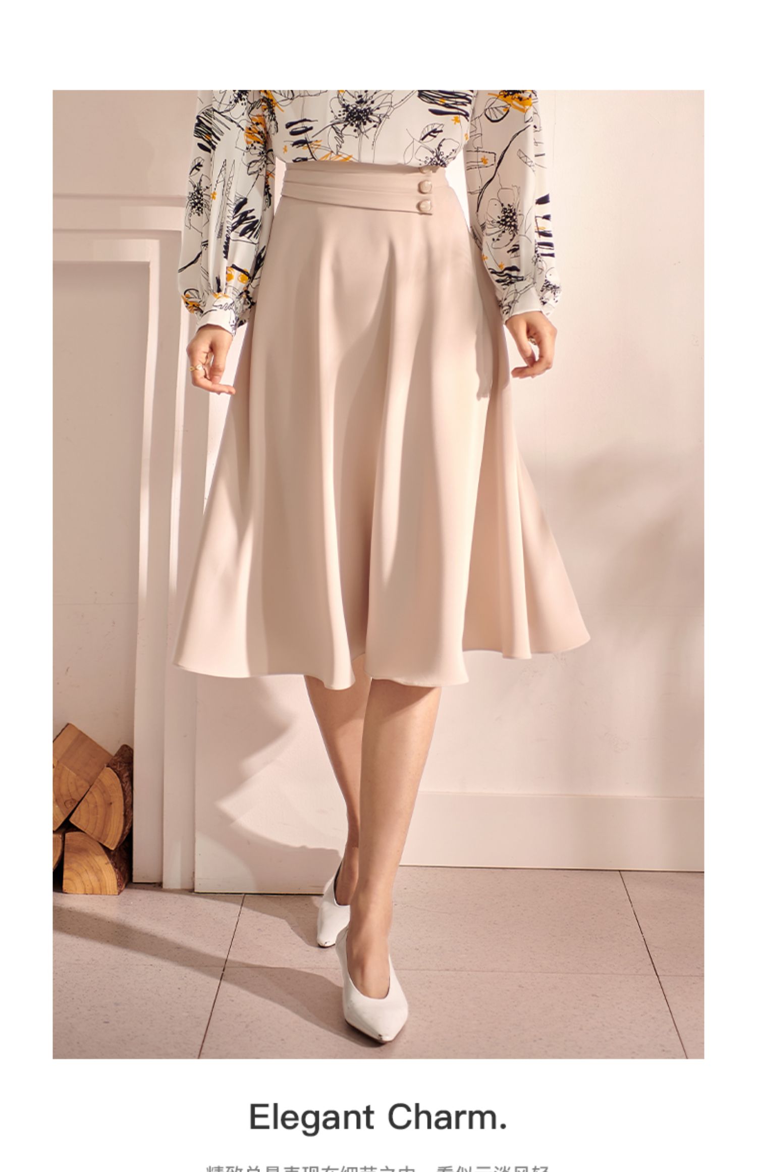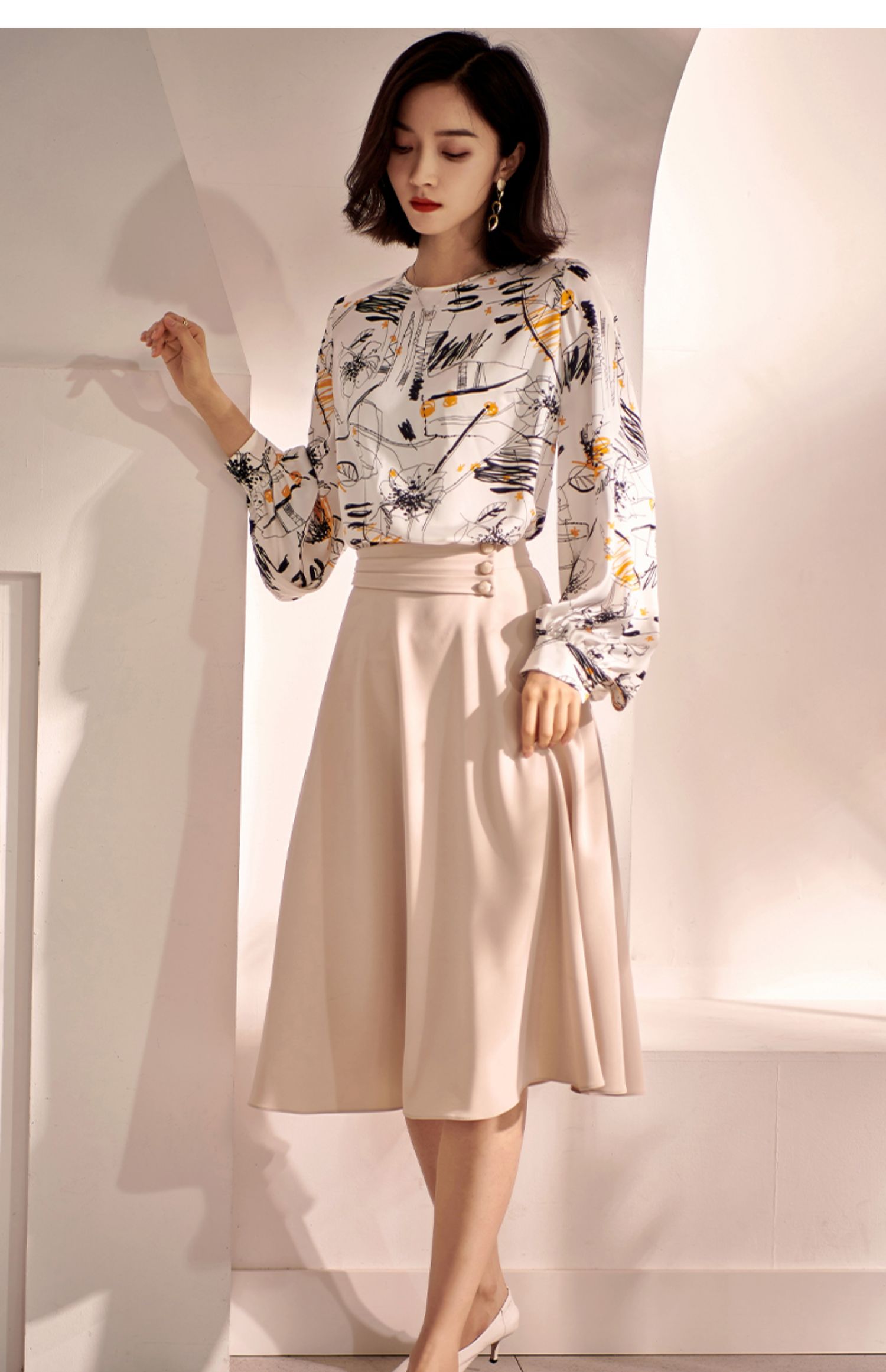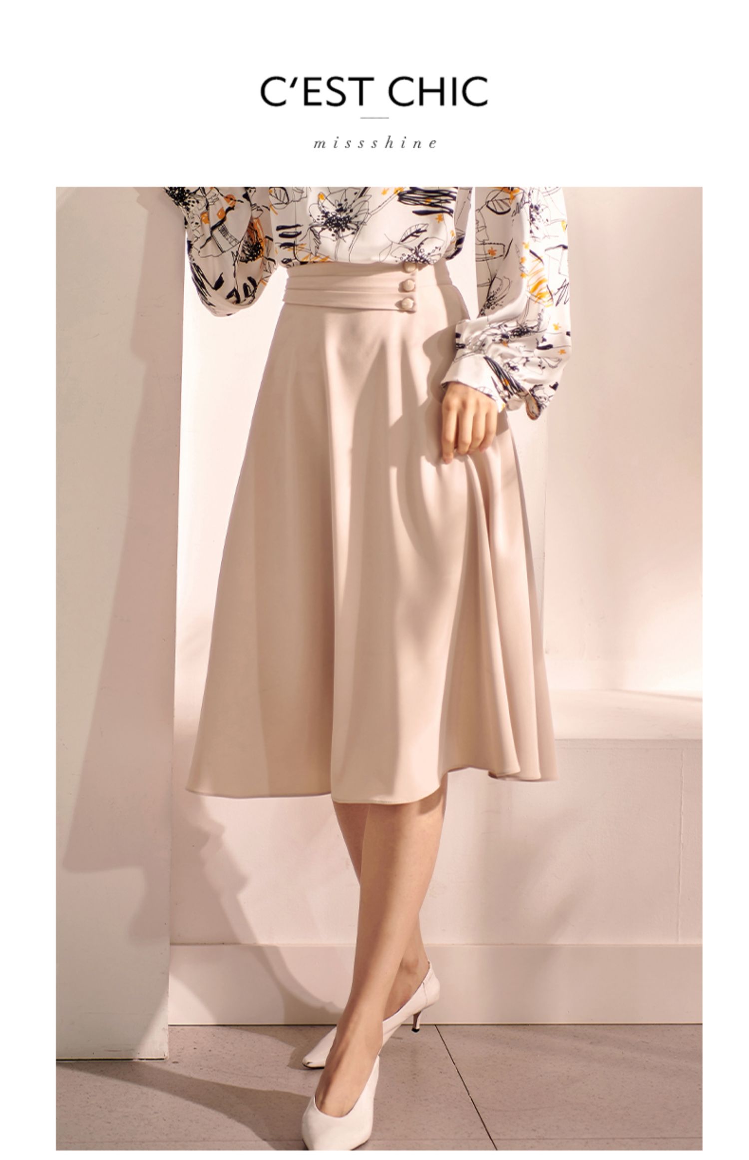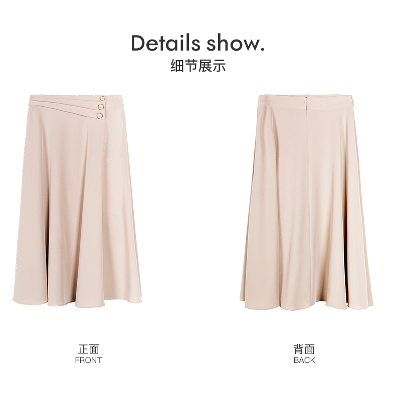 剩S/XL 米思阳2022秋装新款气质赫本风杏色大摆裙高腰显瘦a字半身裙0571