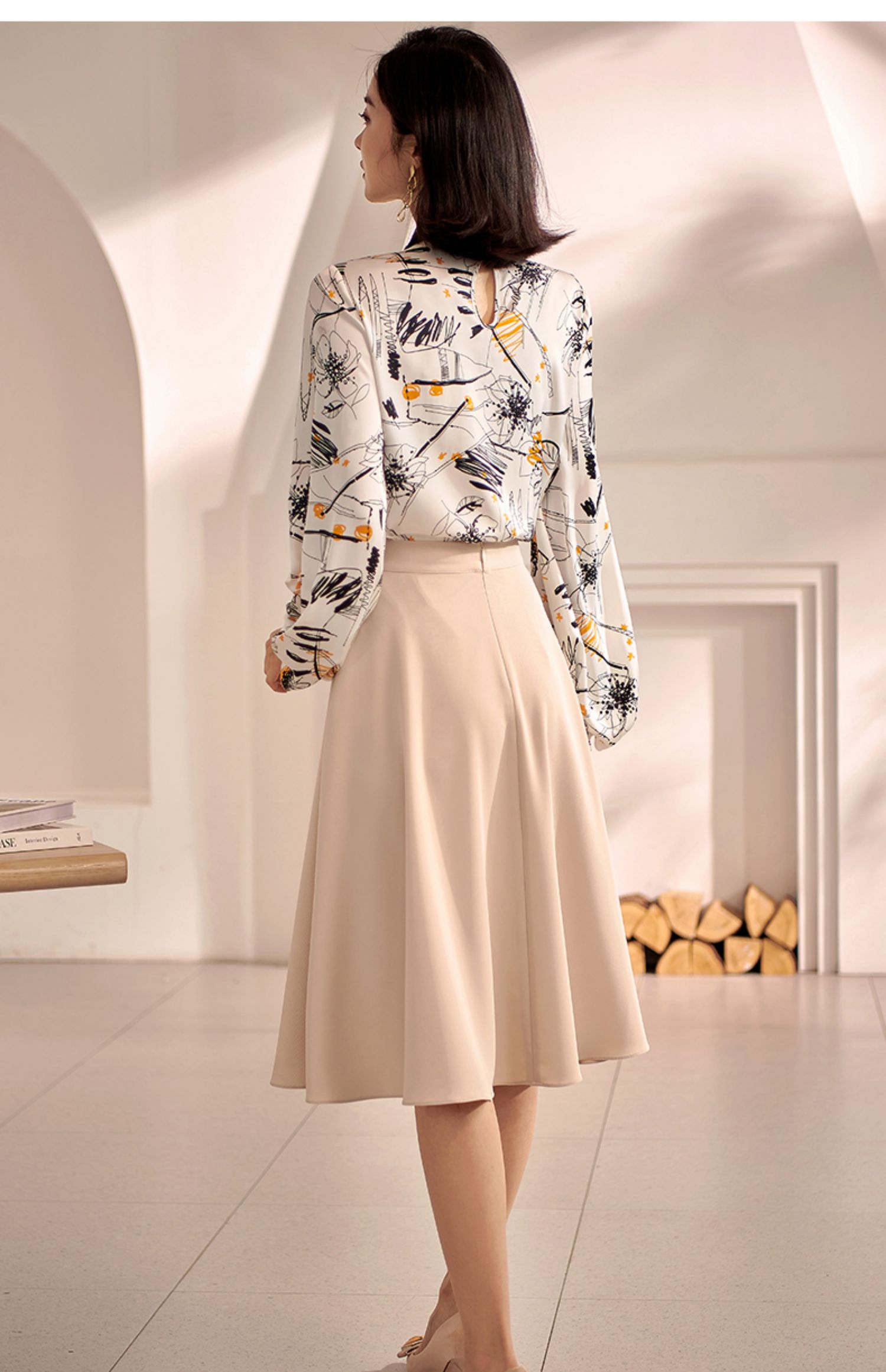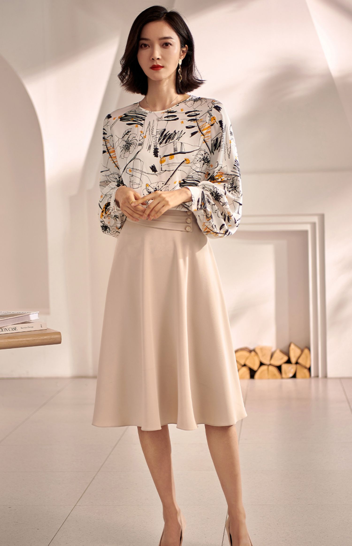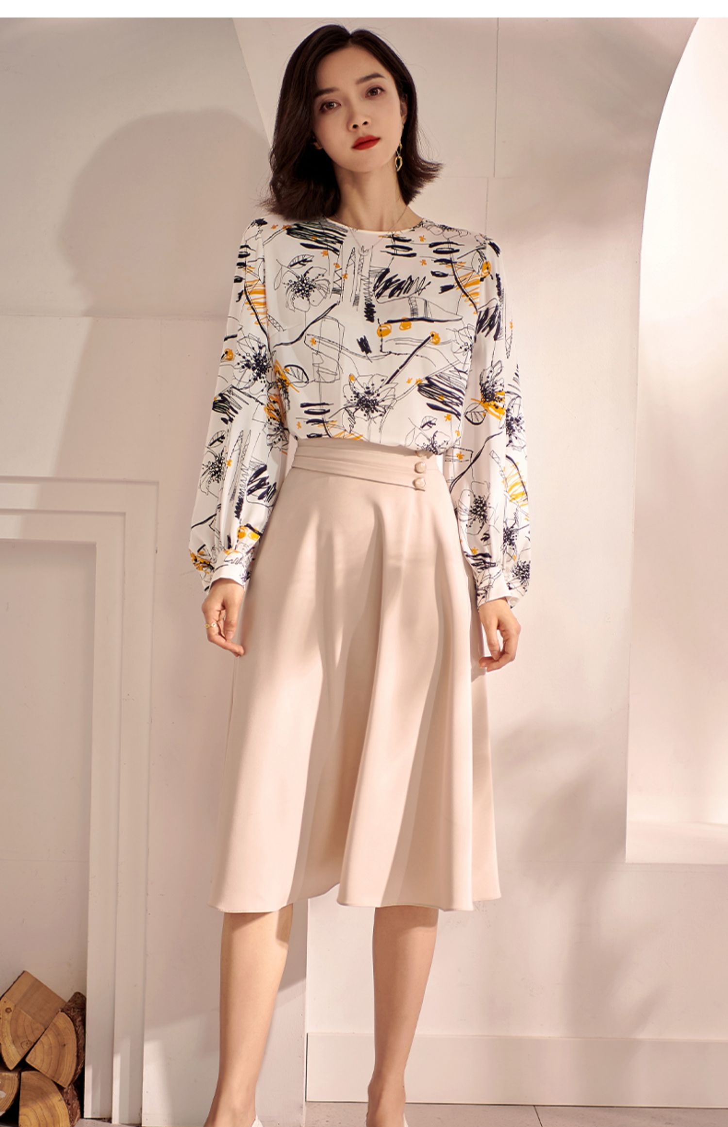 剩S/XL 米思阳2022秋装新款气质赫本风杏色大摆裙高腰显瘦a字半身裙0571