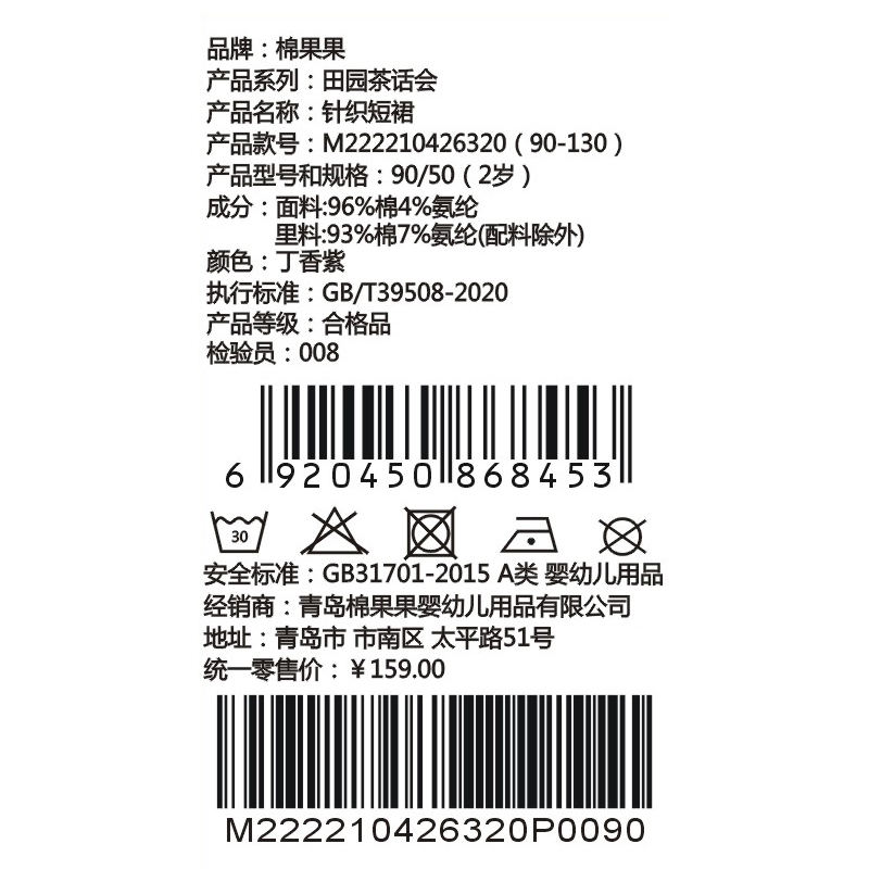 棉果果夏季新品女童纯棉针织短裙M222210426320