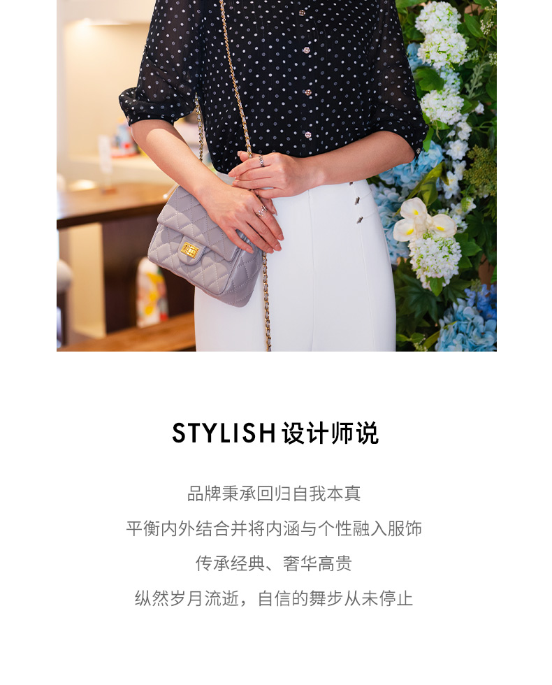 成熟、稳重、高贵典雅、大方得体 融合东方文化的含蓄和法国的浪漫 将创意的艺术性与消费需求相结合 为自信女性塑造高品质场合服装