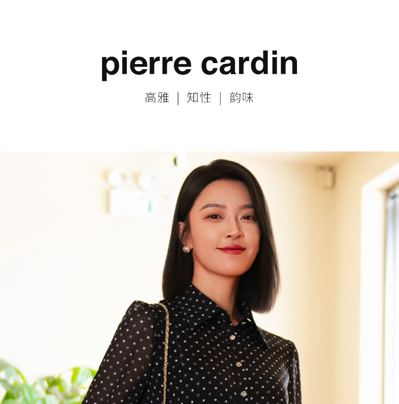 皮尔卡丹女装连衣裙气质时尚修身通勤宴会褶皱连衣裙P3341E3876T0