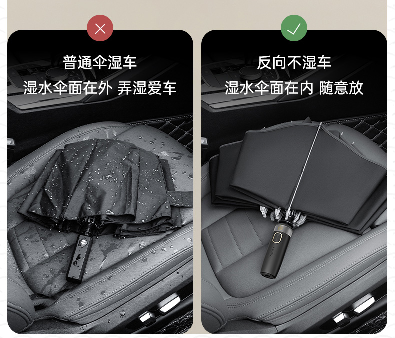 左都ZD149自动节节收反向黑胶晴雨伞