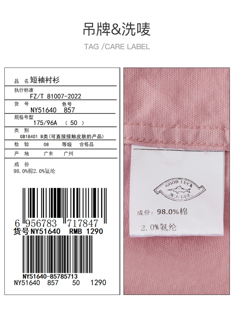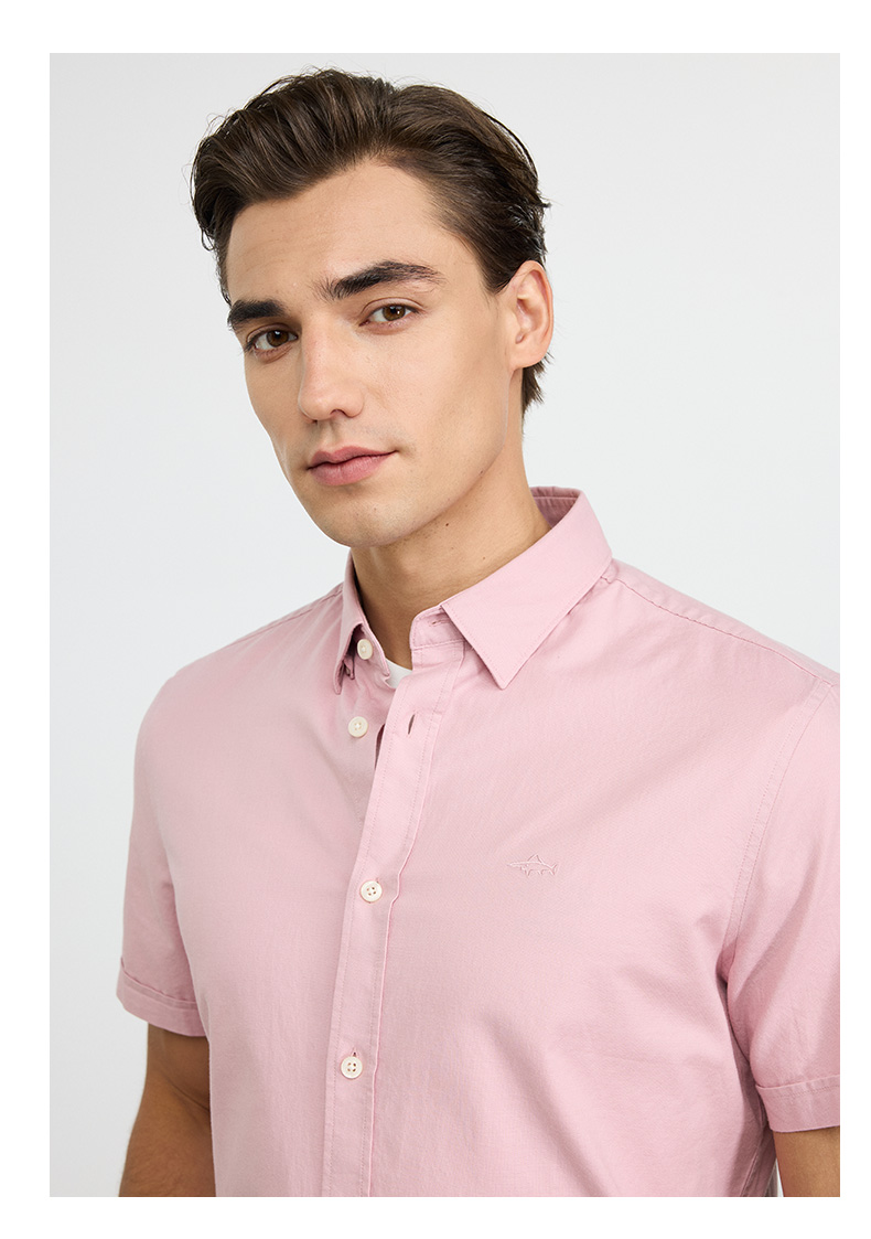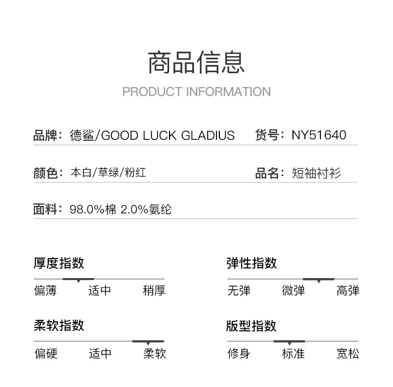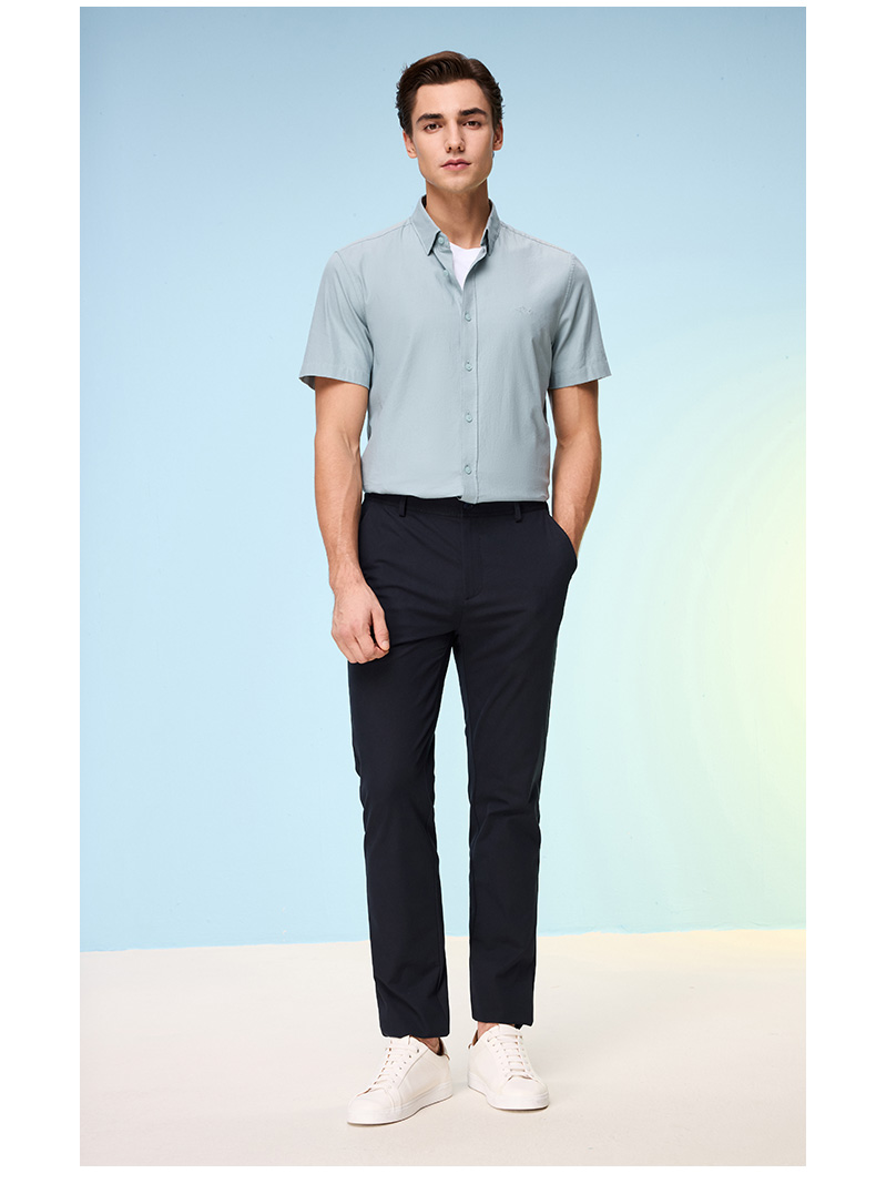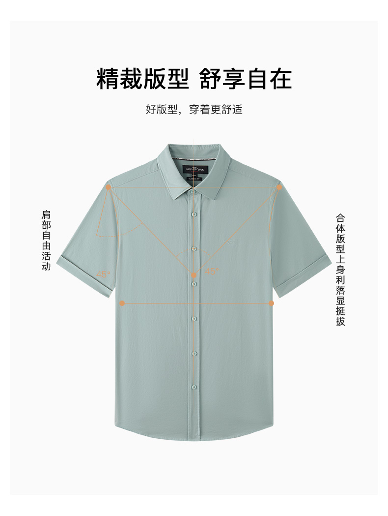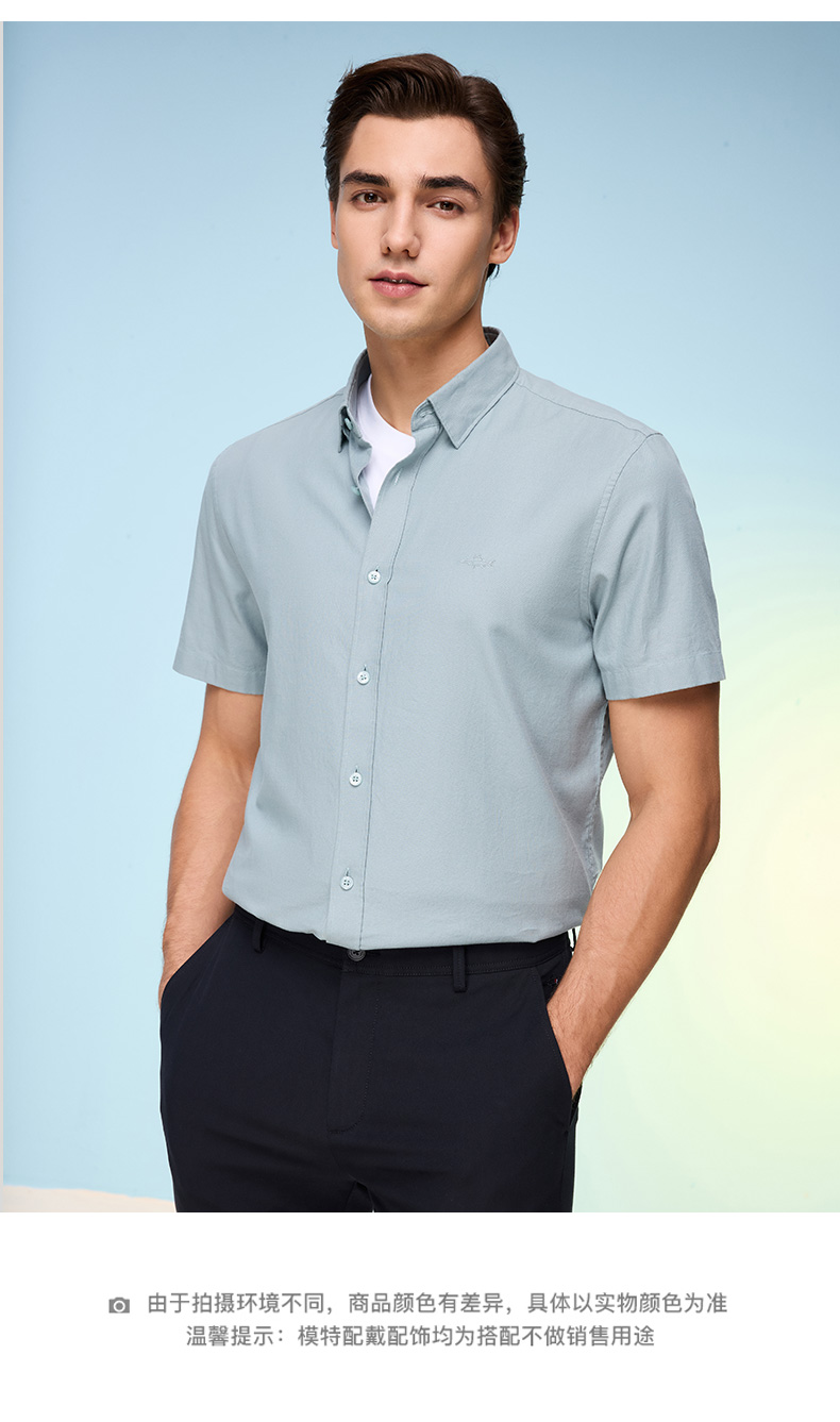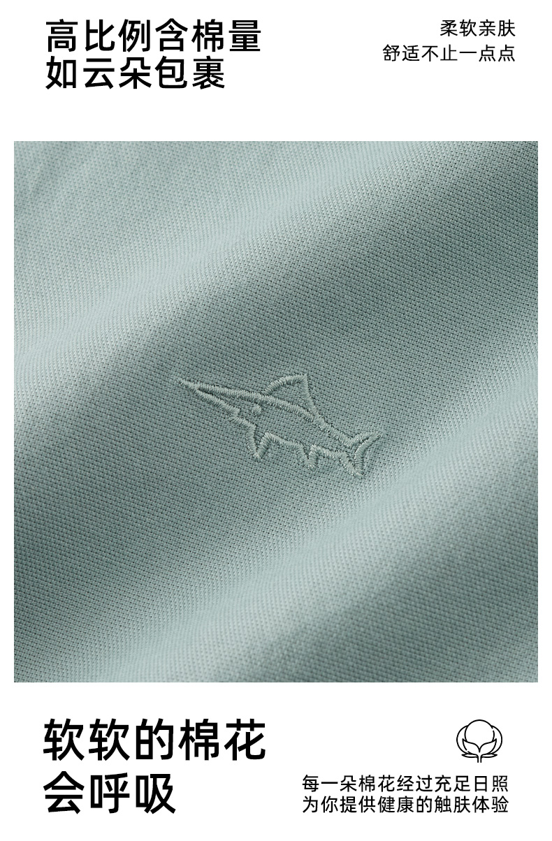 德鲨鲨鱼棉质短袖衬衫男青年2026夏新款休闲简约上衣打底弹力衬衣