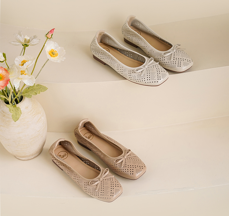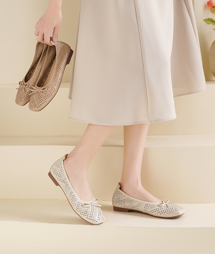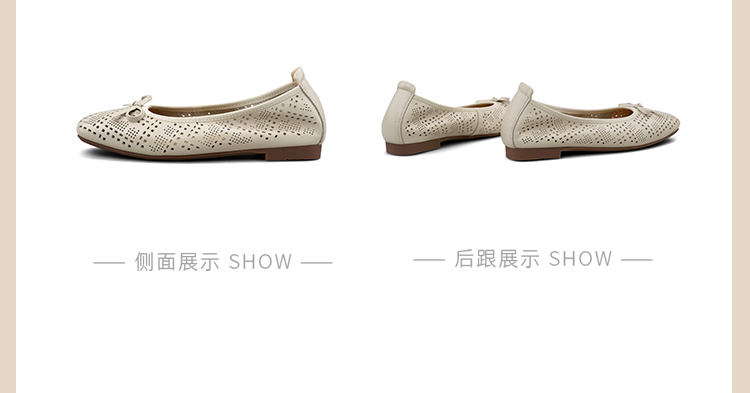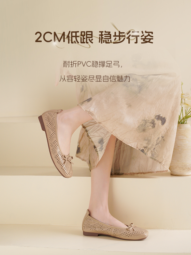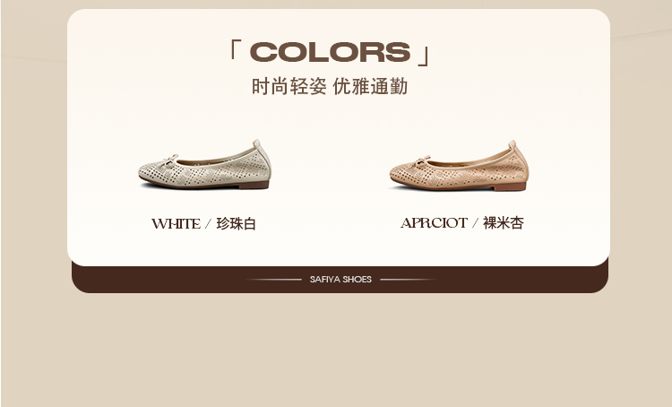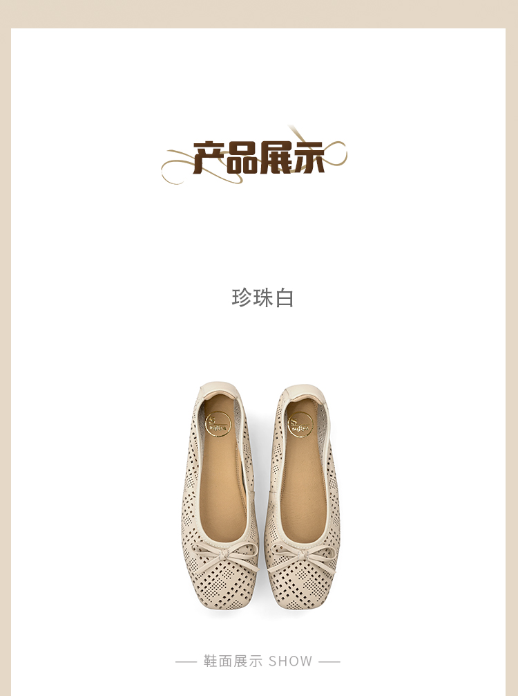 Safiya/索菲娅2025时尚浅口真皮透气低跟方头蝴蝶结平底单鞋SFD3111402