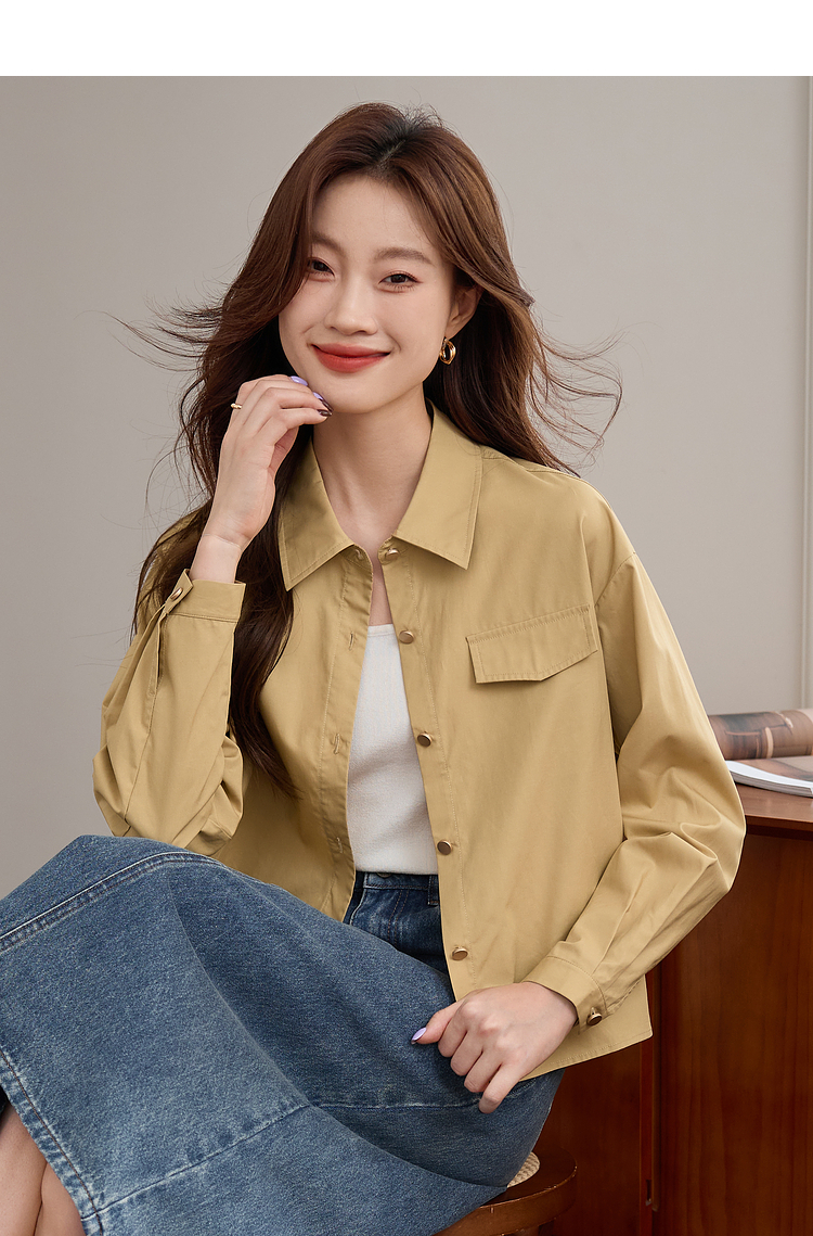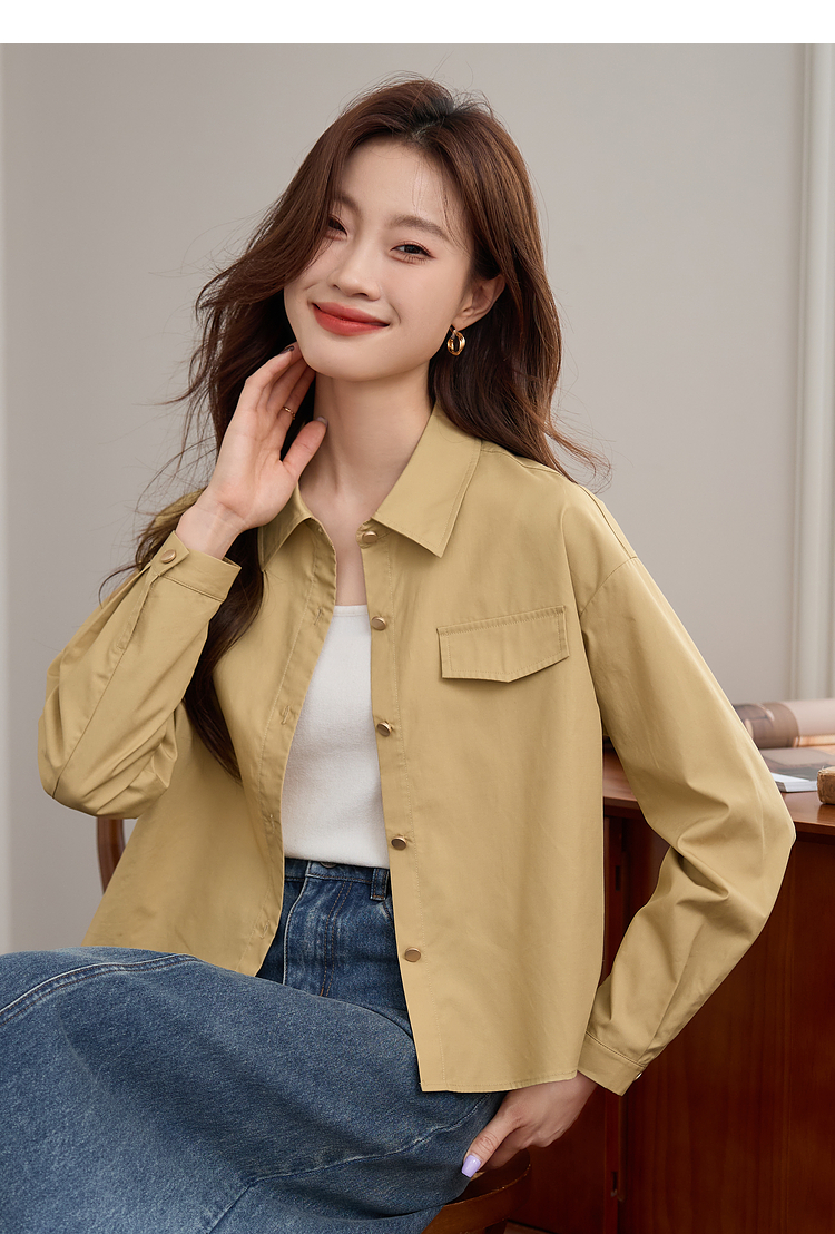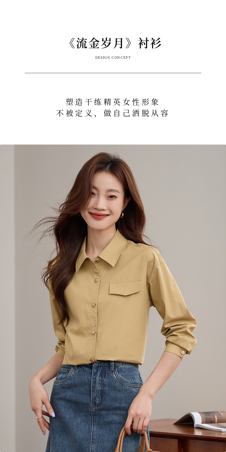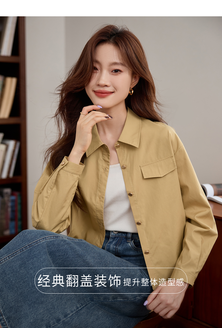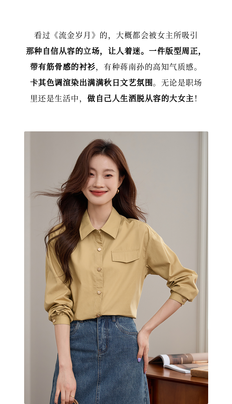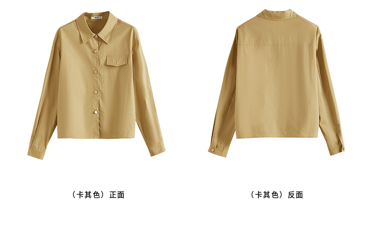 【年终特卖】熙世界卡其色天丝衬衫长袖小个子法式衬衣短款上衣2025秋季新款