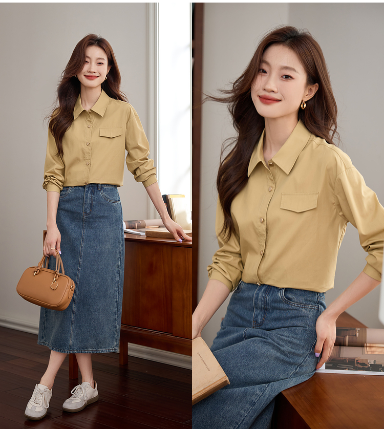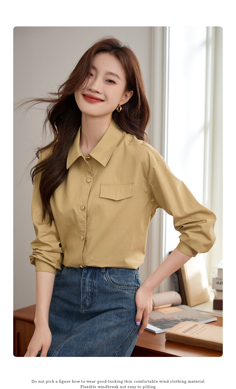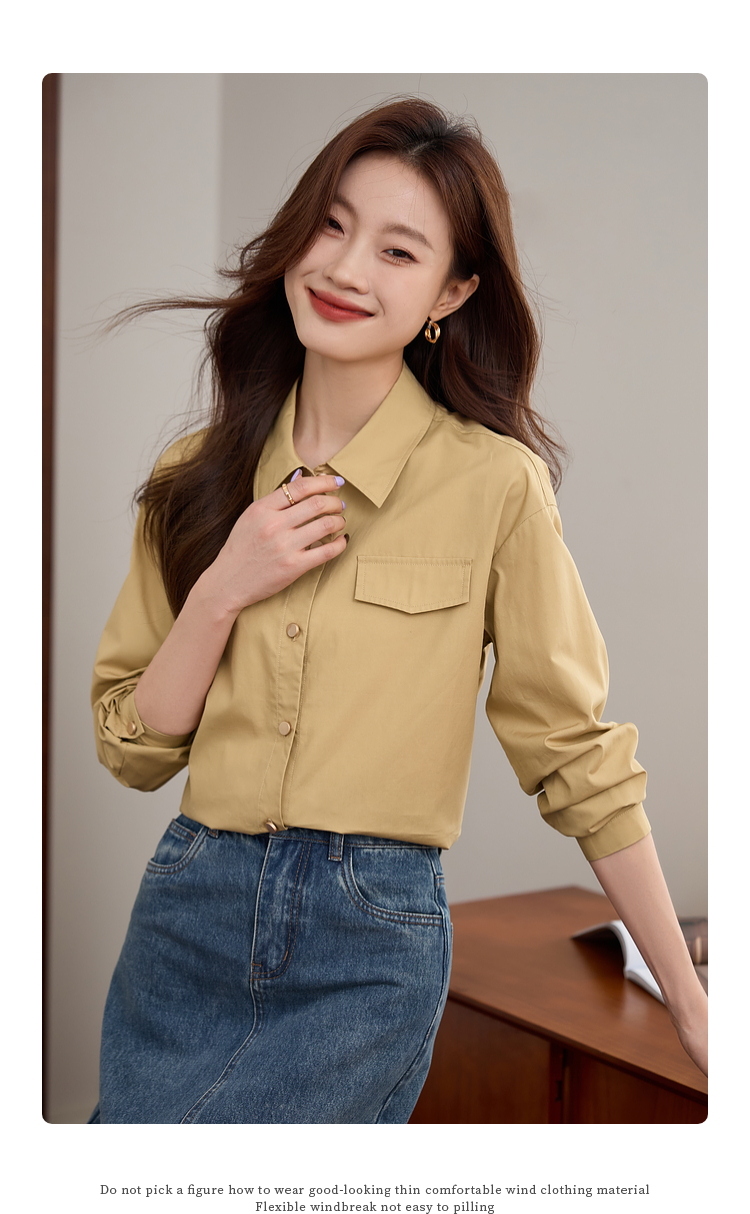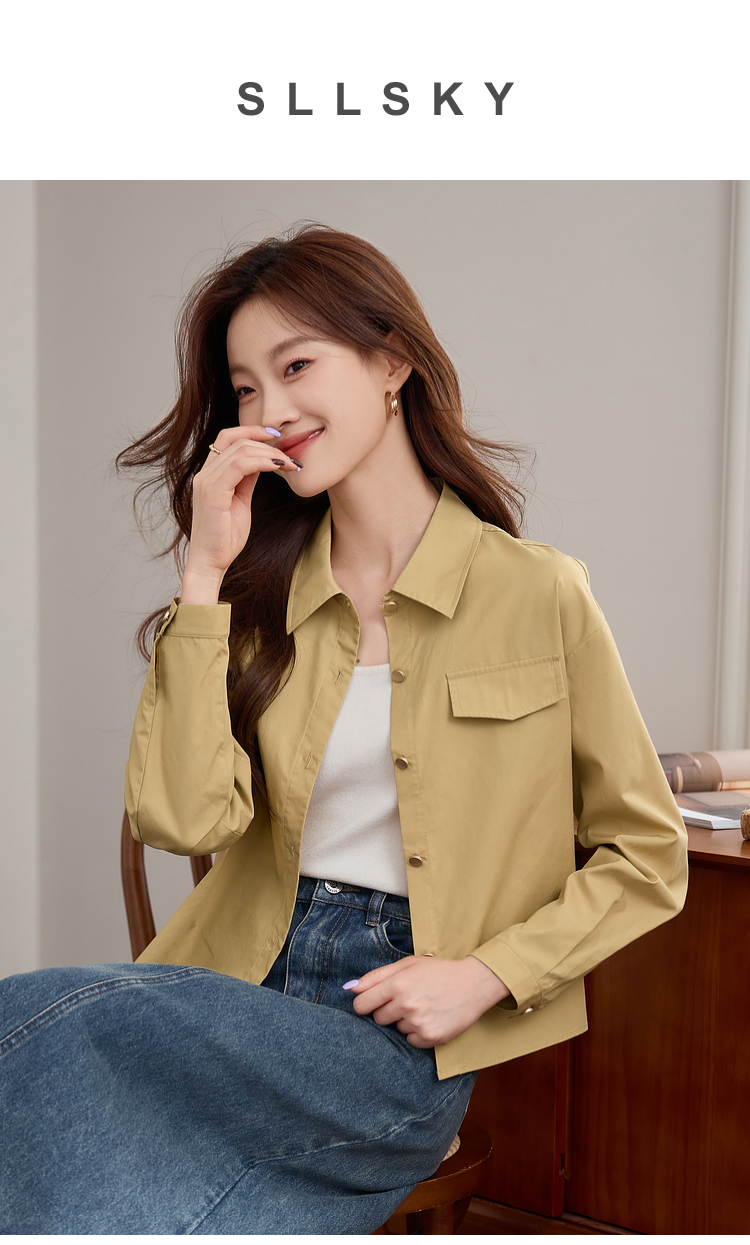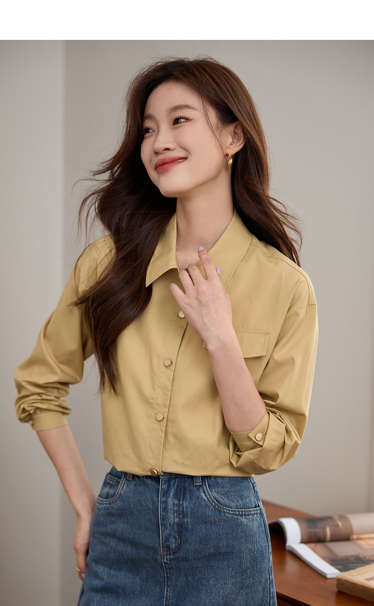 【年终特卖】熙世界卡其色天丝衬衫长袖小个子法式衬衣短款上衣2025秋季新款