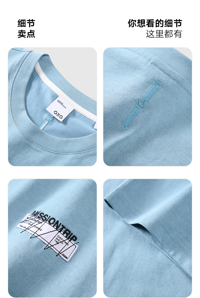 GXG男装 圆领T恤简约纯色上衣短袖针织 2025夏季热卖