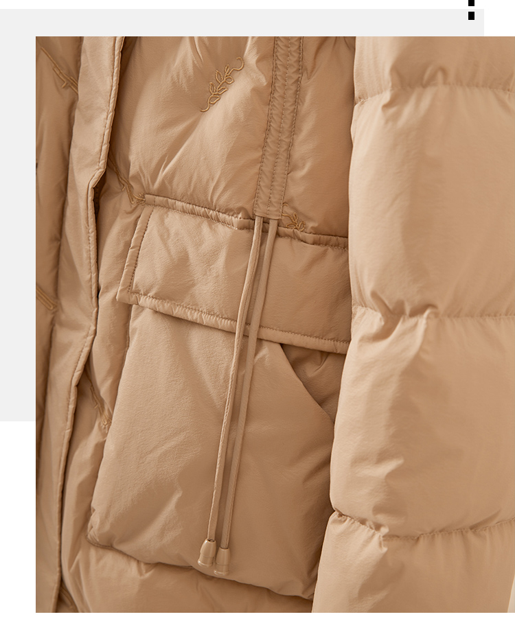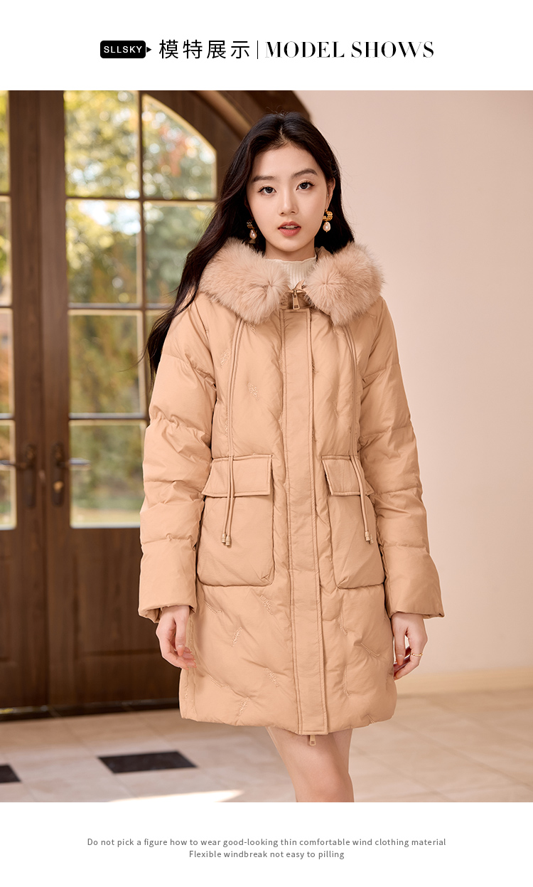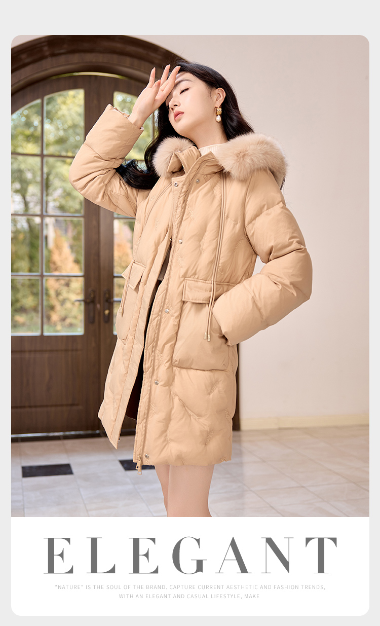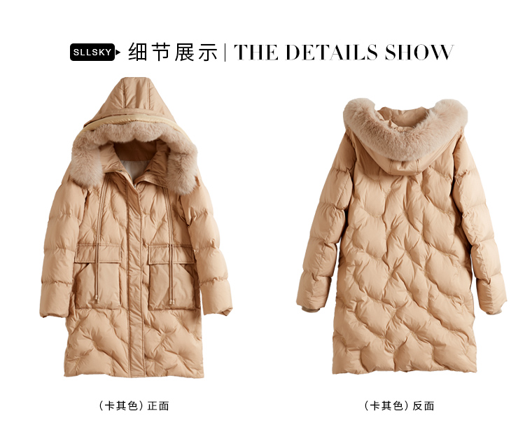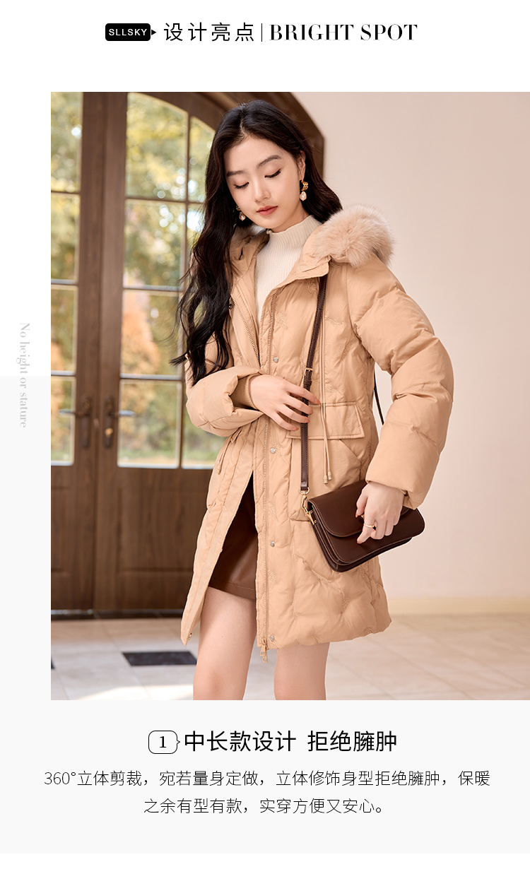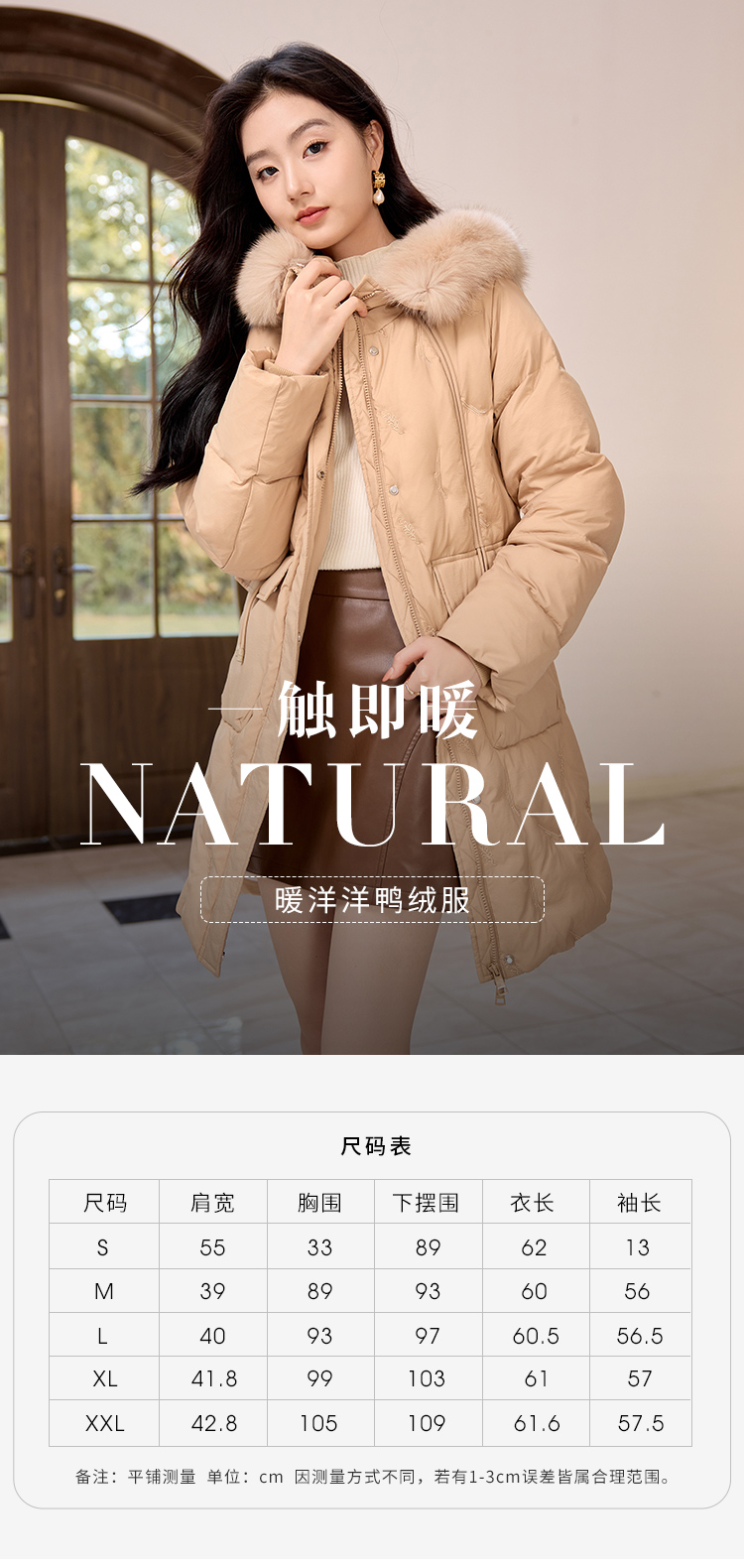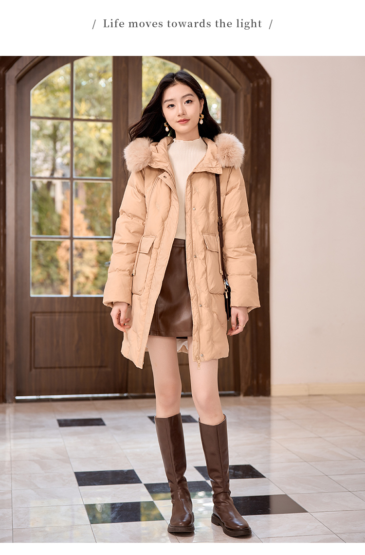 【年终特卖】熙世界2025新款时髦狐狸毛领羽绒服女士中长款白鸭绒连帽外套冬装
