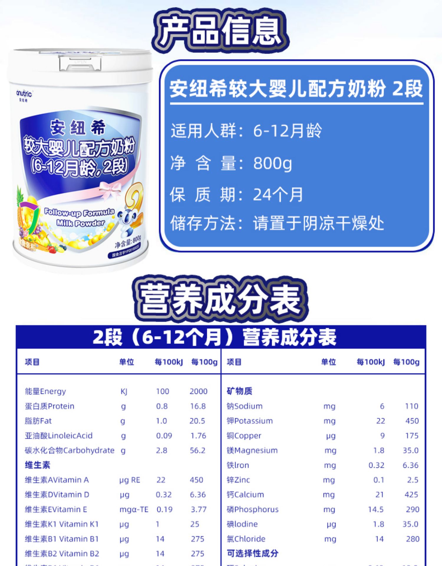 【咨询改价】安纽希婴儿配方奶粉1段 婴儿牛奶粉 1/2/3段 800g罐装