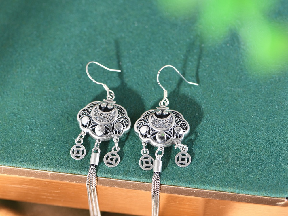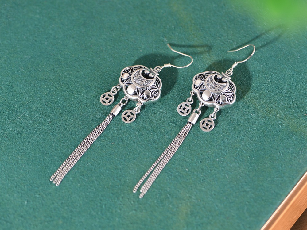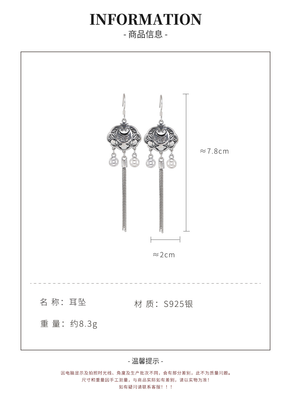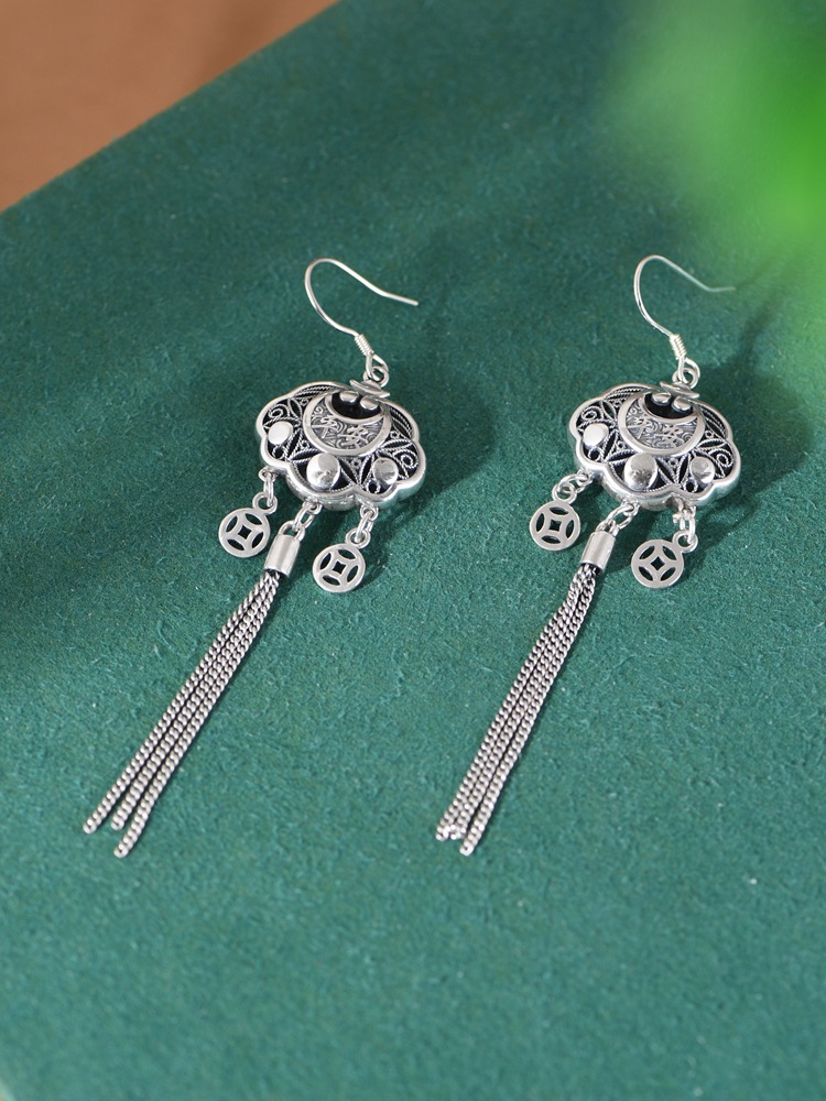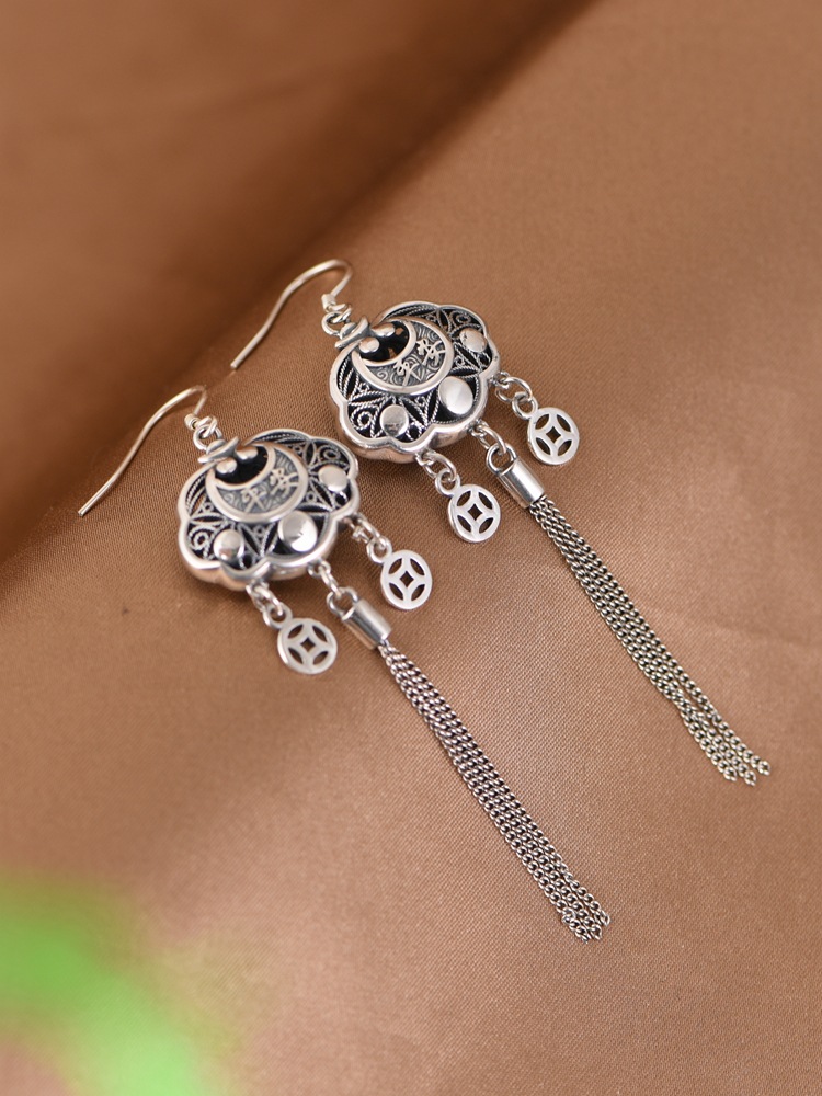 【风云如意】S925银镂空平安如意长款流苏耳饰【SCH-SY33139】