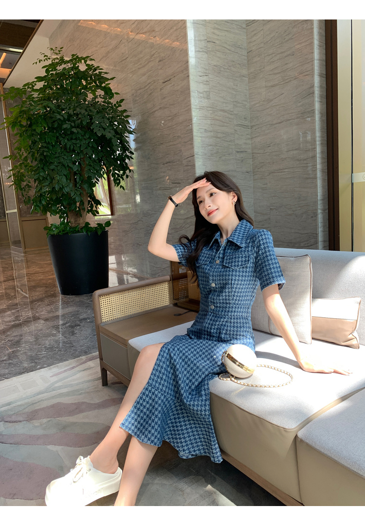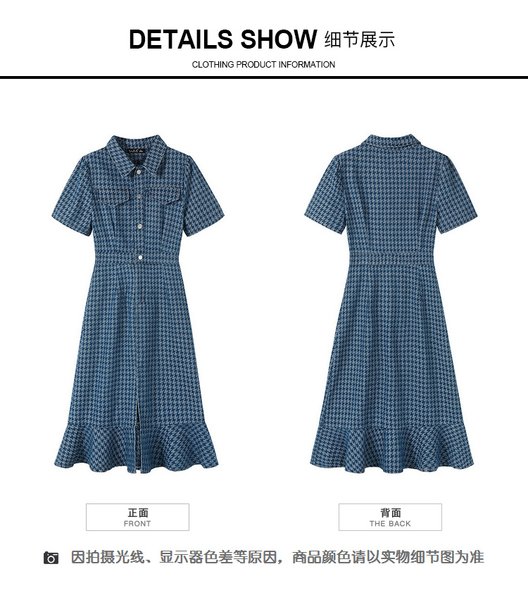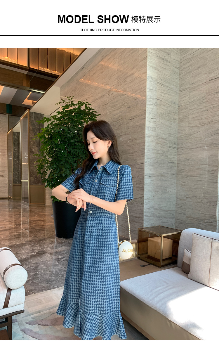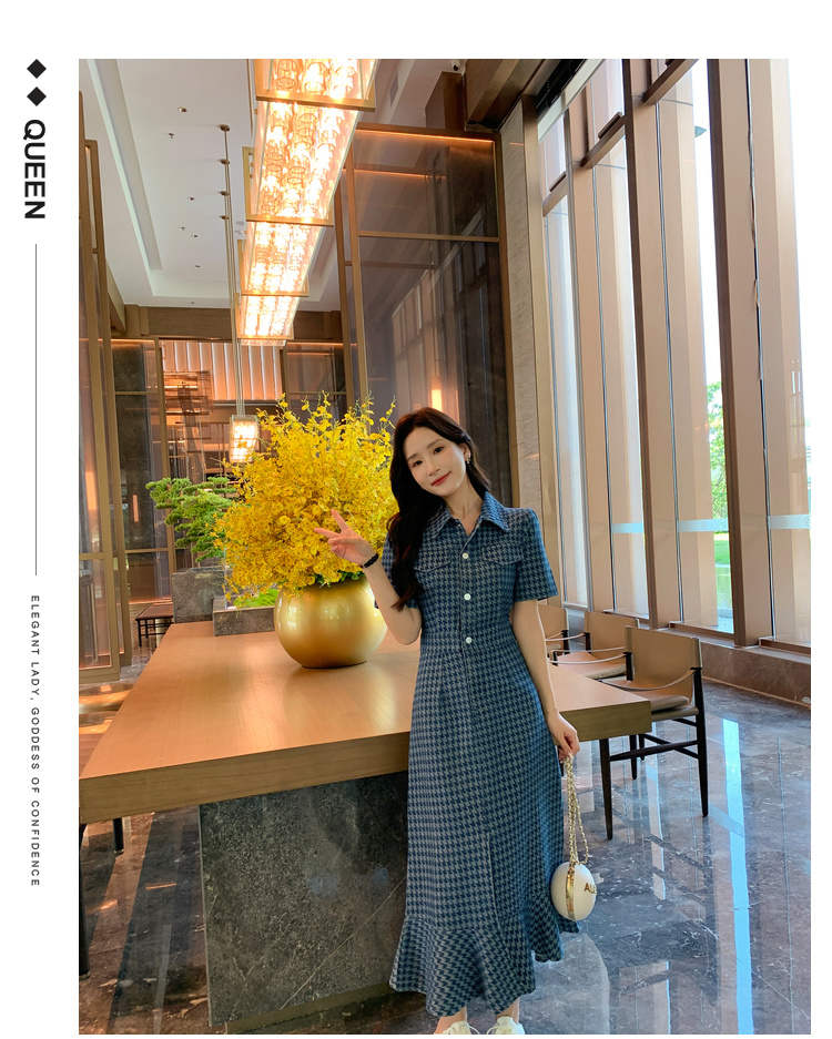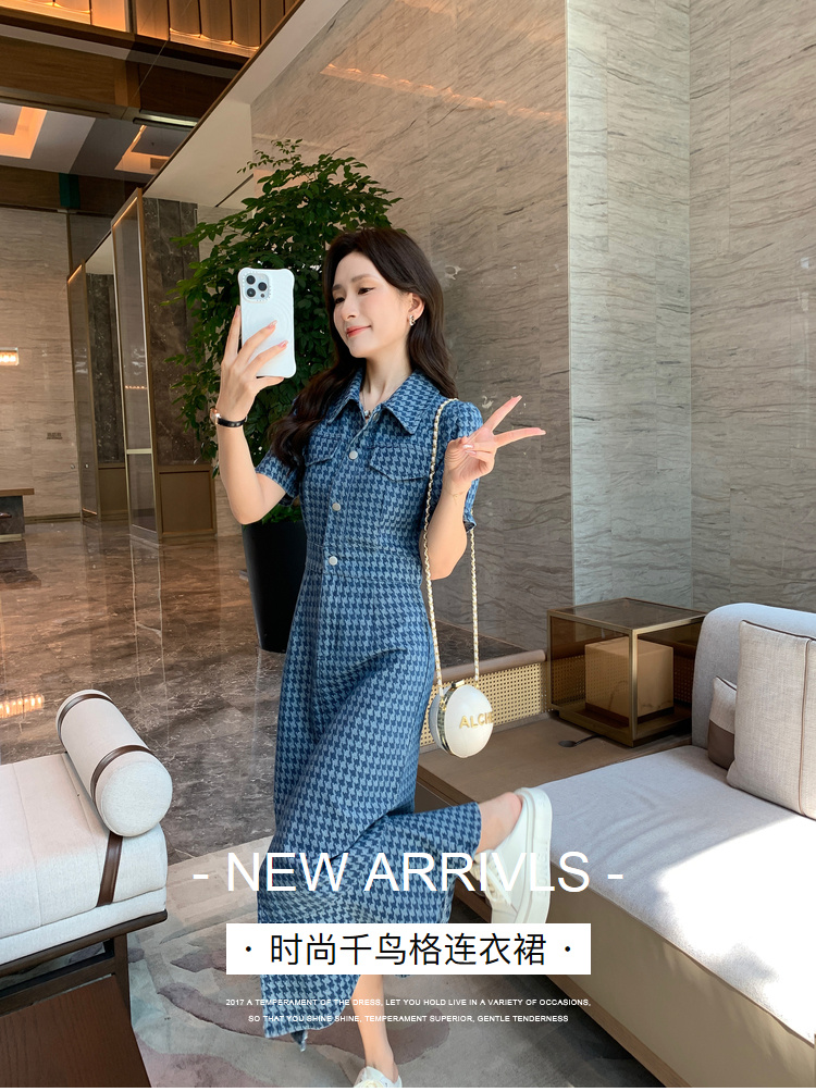 奢姿大码女装2025夏季新款翻领裙子胖妹妹减龄千鸟格时尚连衣裙3342802319