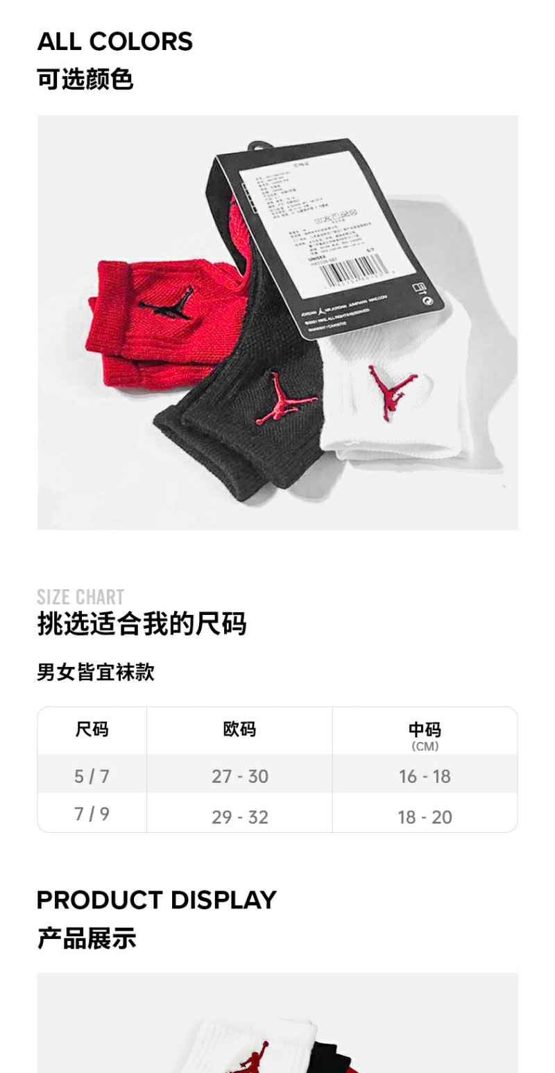 AIR JORDAN乔丹童装正品年春秋儿童短袜3双装袜子JD2113041