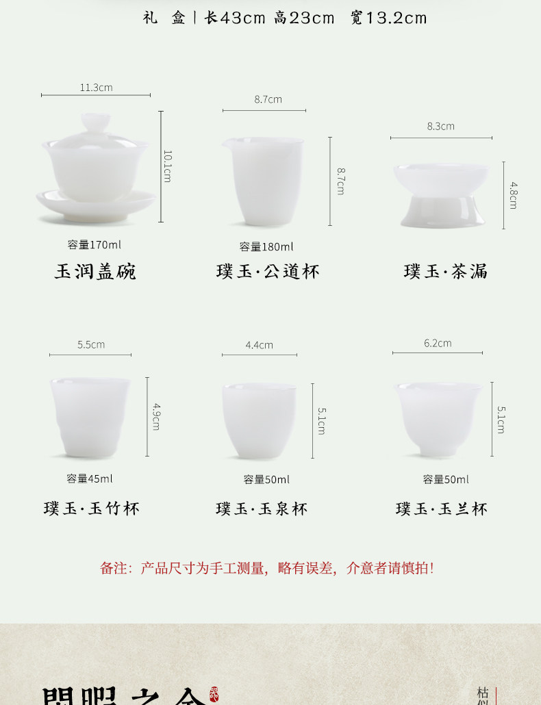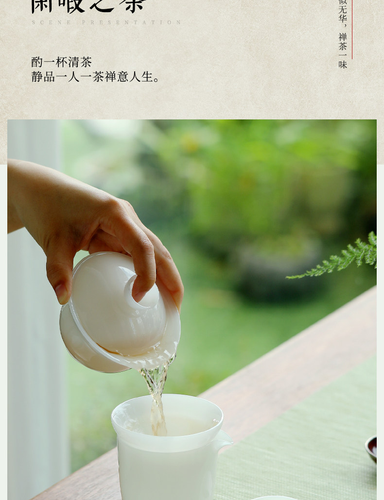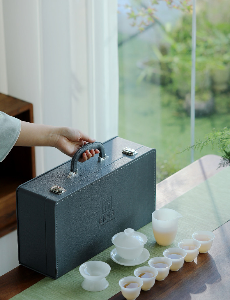 璞玉茶具套装天然中式整套皮盒装德化白瓷功夫盖碗茶杯送礼