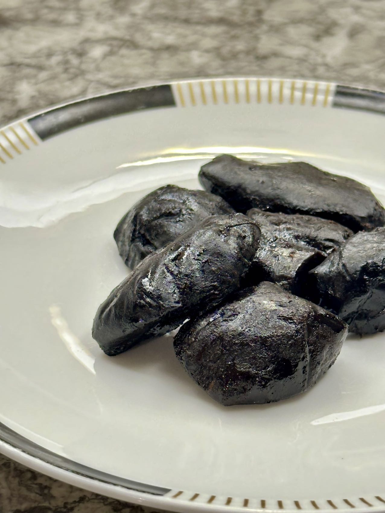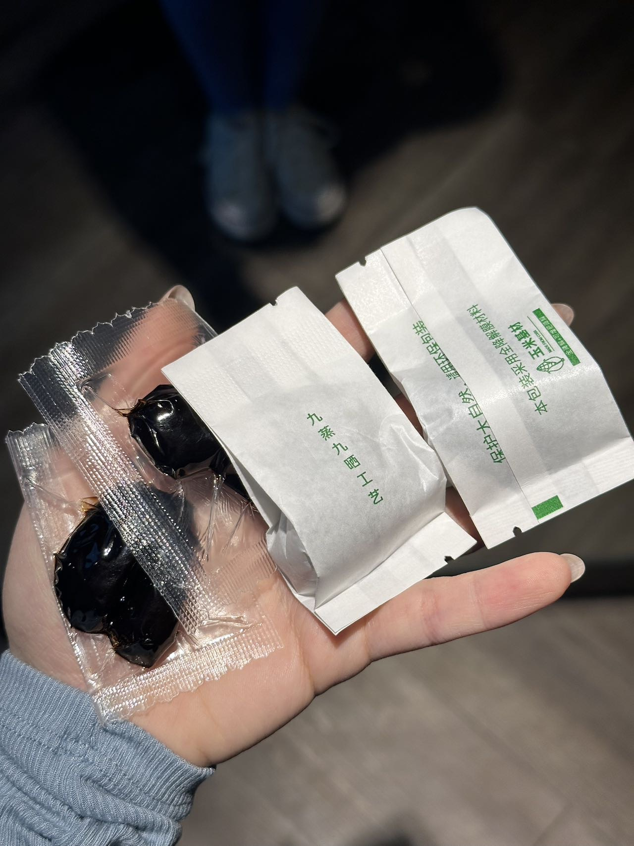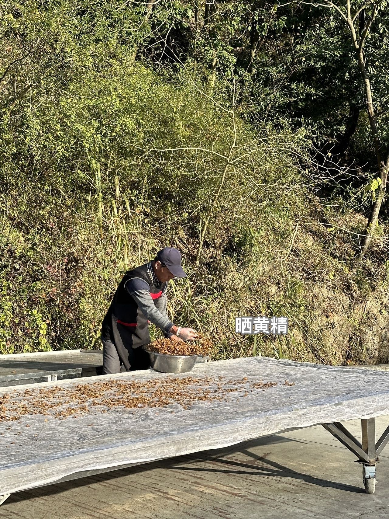 我们去验收时,诺大的晒场上,有的在晒,有的九制黄精在剪。最嫩的部分剪下来给我们做成黄精果,一些比较硬的部分就熬成膏加到芝麻丸中,把自然给我们的好东西物尽其用。