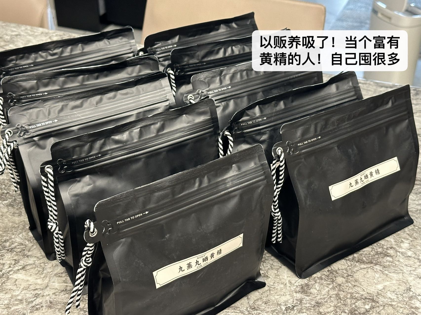 九蒸九晒工艺到位和用水讲究非常关键。九蒸九晒黄精工艺的原理是:微破壁+充电。 蒸,是柴火汽蒸,把黄精营养小分子化。 晒,是太阳晒,把黄精营养阳光活性化,让人体更好吸收。九为至阳之数。九蒸九晒黄精吸天地之灵气,承日月之精华,阴阳平衡。