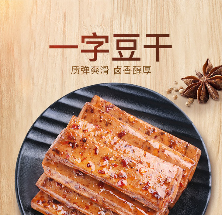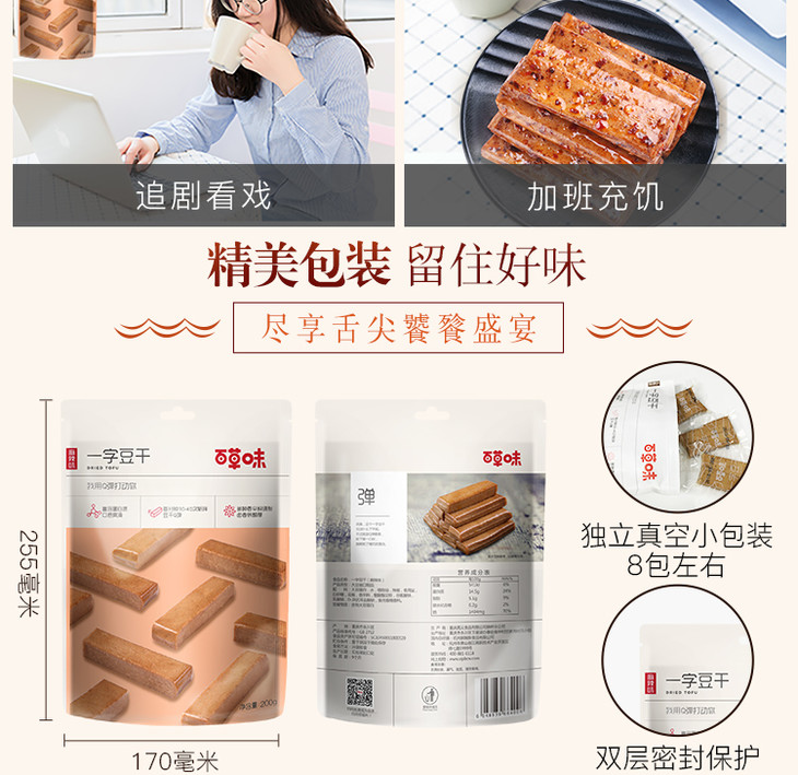 ※买一送一!一字豆干 豆制品 豆腐干 零食小吃 办公室 休闲食品 麻辣味 蛋白素肉豆干 百草味 200g/袋