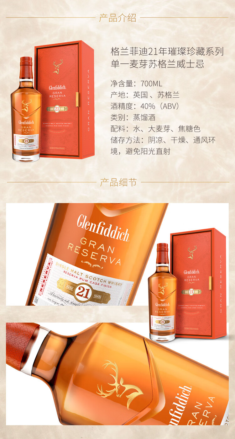 【有税版】格兰菲迪21年苏格兰单一麦芽 威士忌 700ml 璀璨珍藏