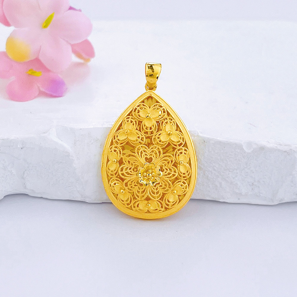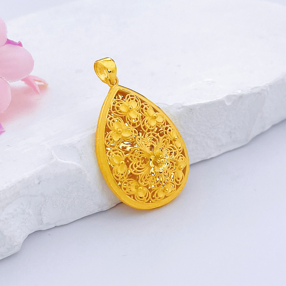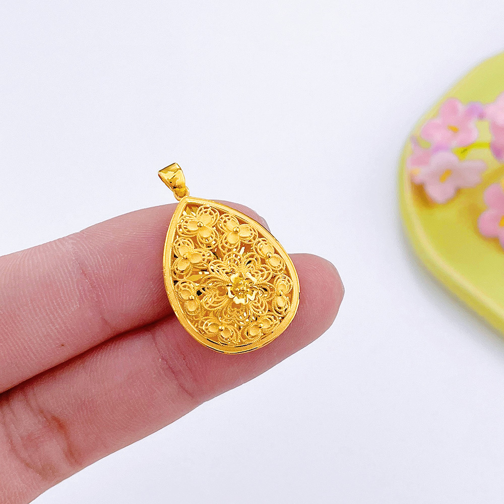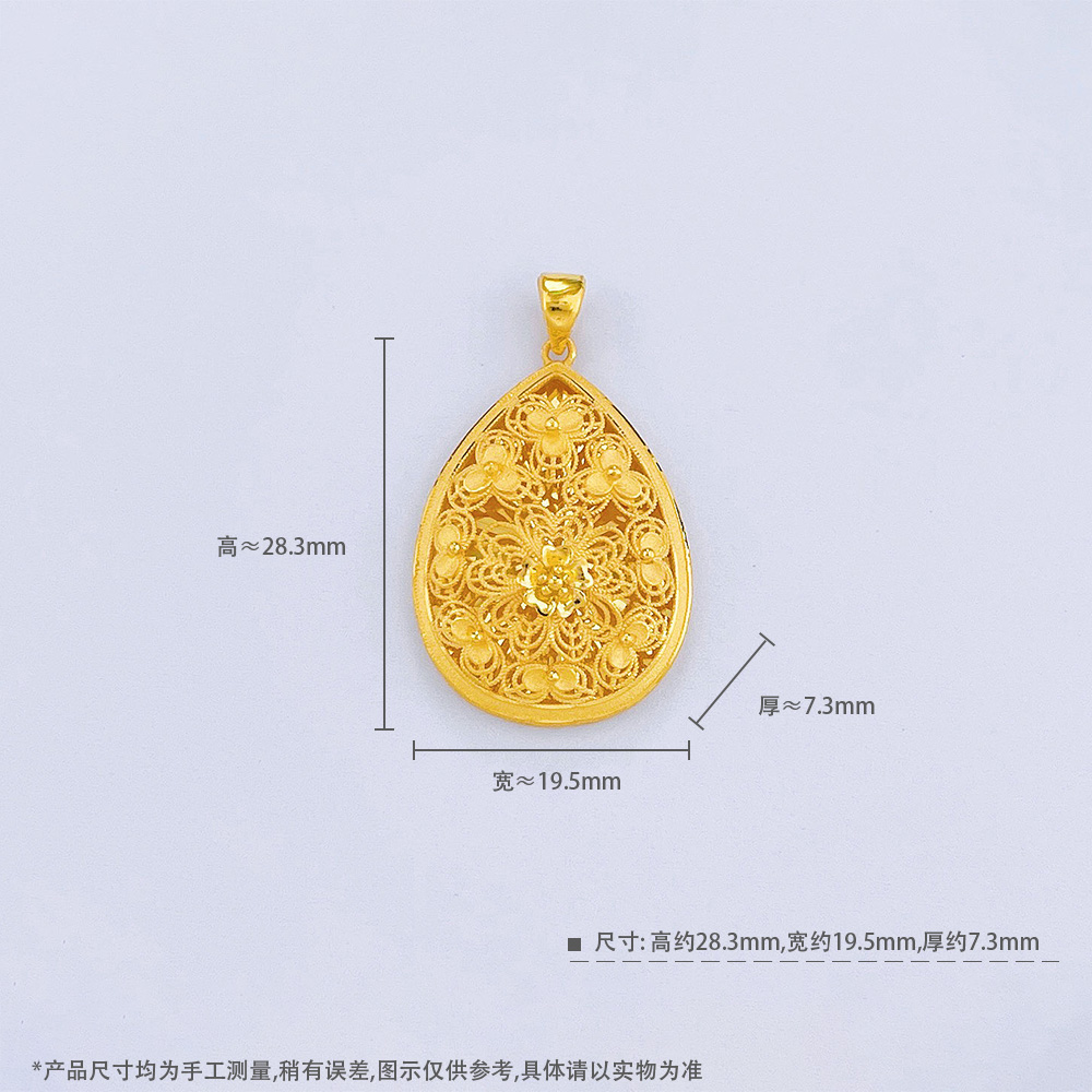 【限时克减150元】足金999.9 镂空花丝影底花卉水滴形吊坠(AF120DZ00252)预售产品下单后不退款不退货不换货不补差价