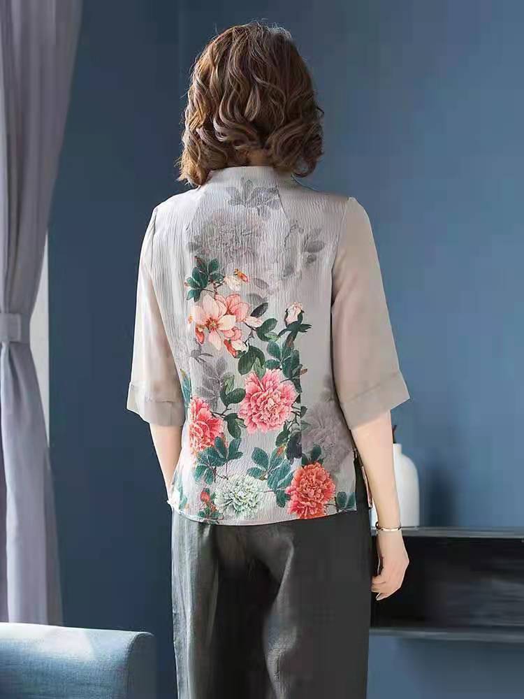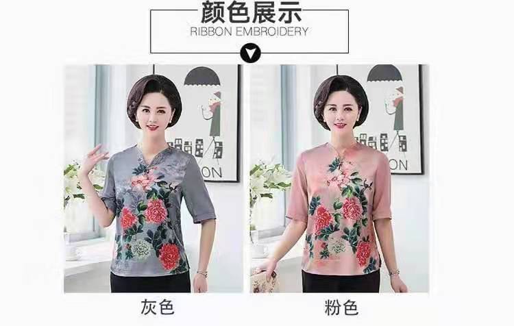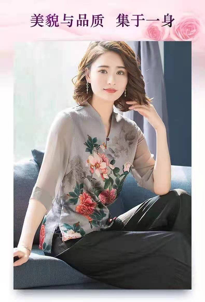 诺林兰,真丝妈妈装,高端大牌,93%.桑蚕丝,复古印花,中袖,