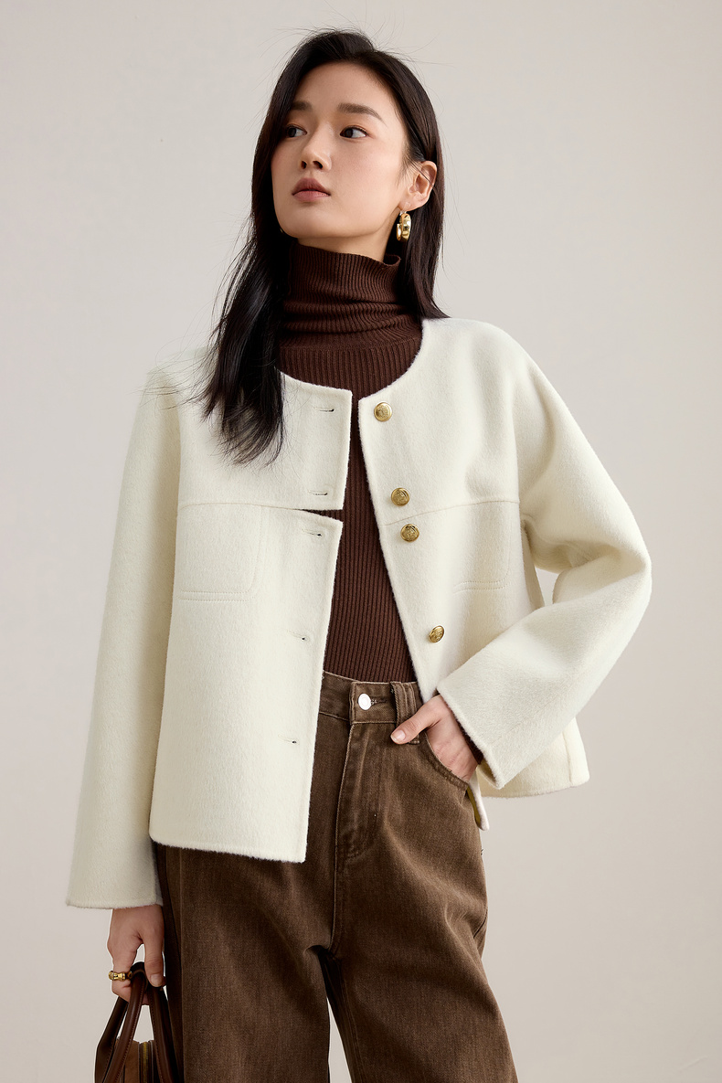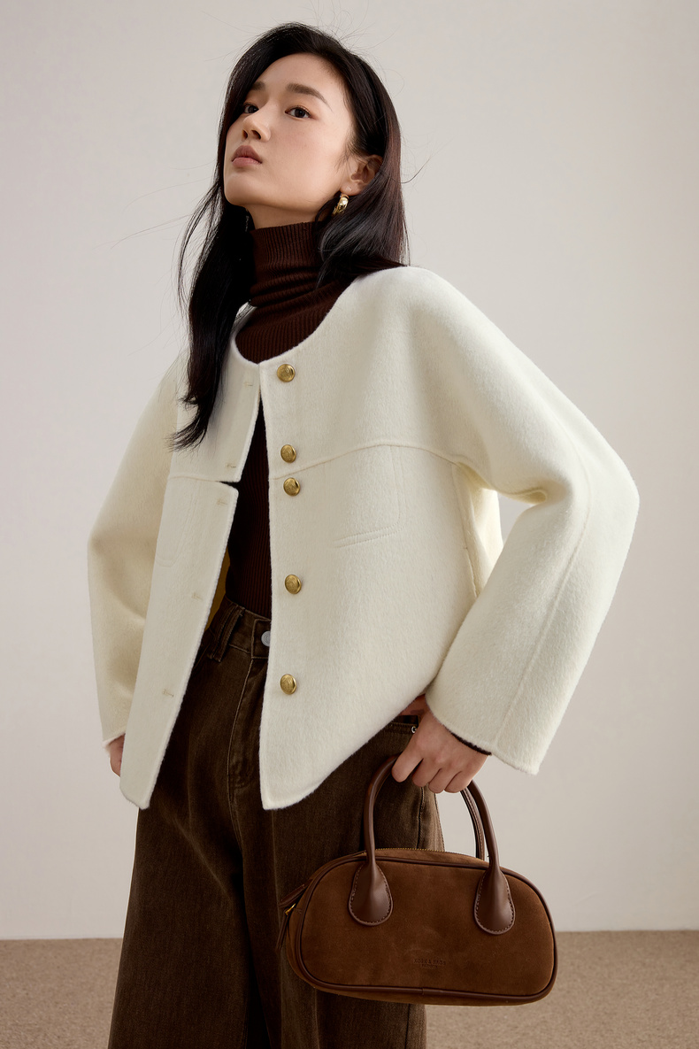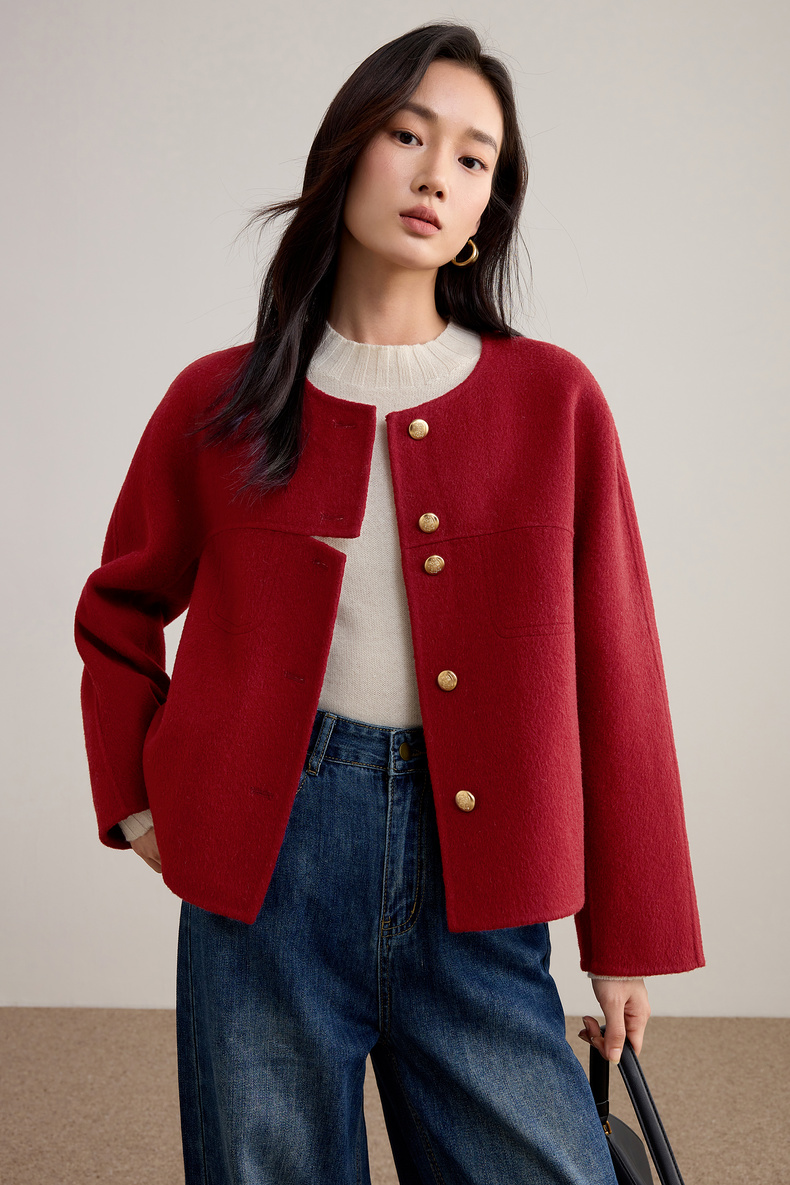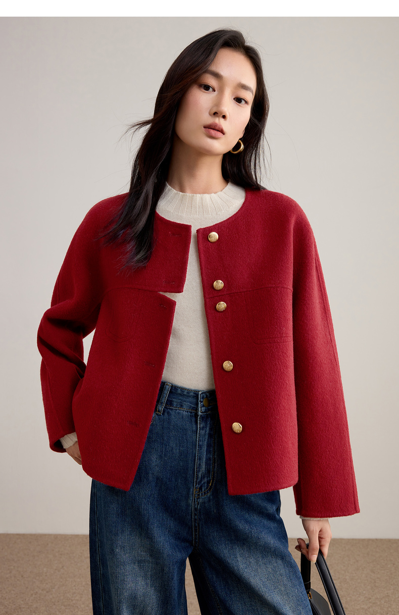 【内购】【100%绵羊毛】900克70支圆领金属扣专机线缝制小个子短外套-W54OF8764