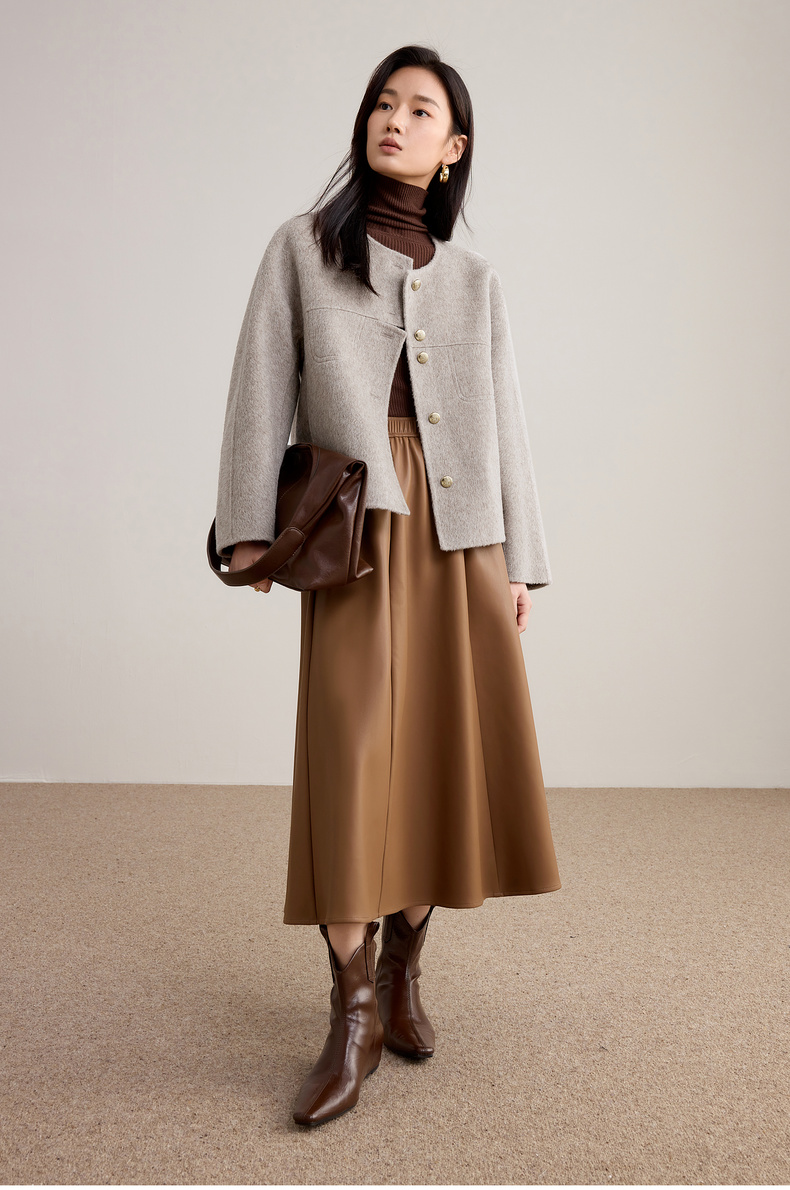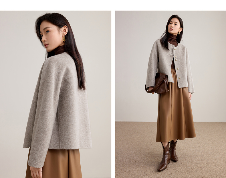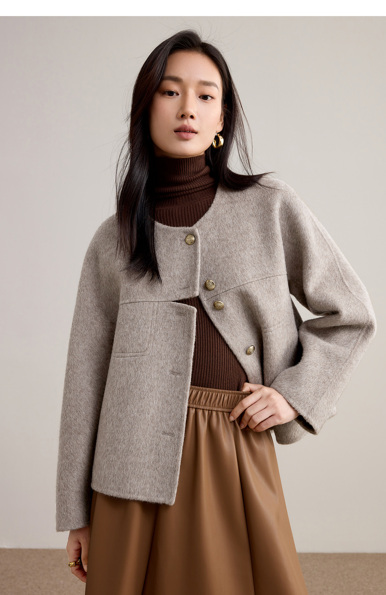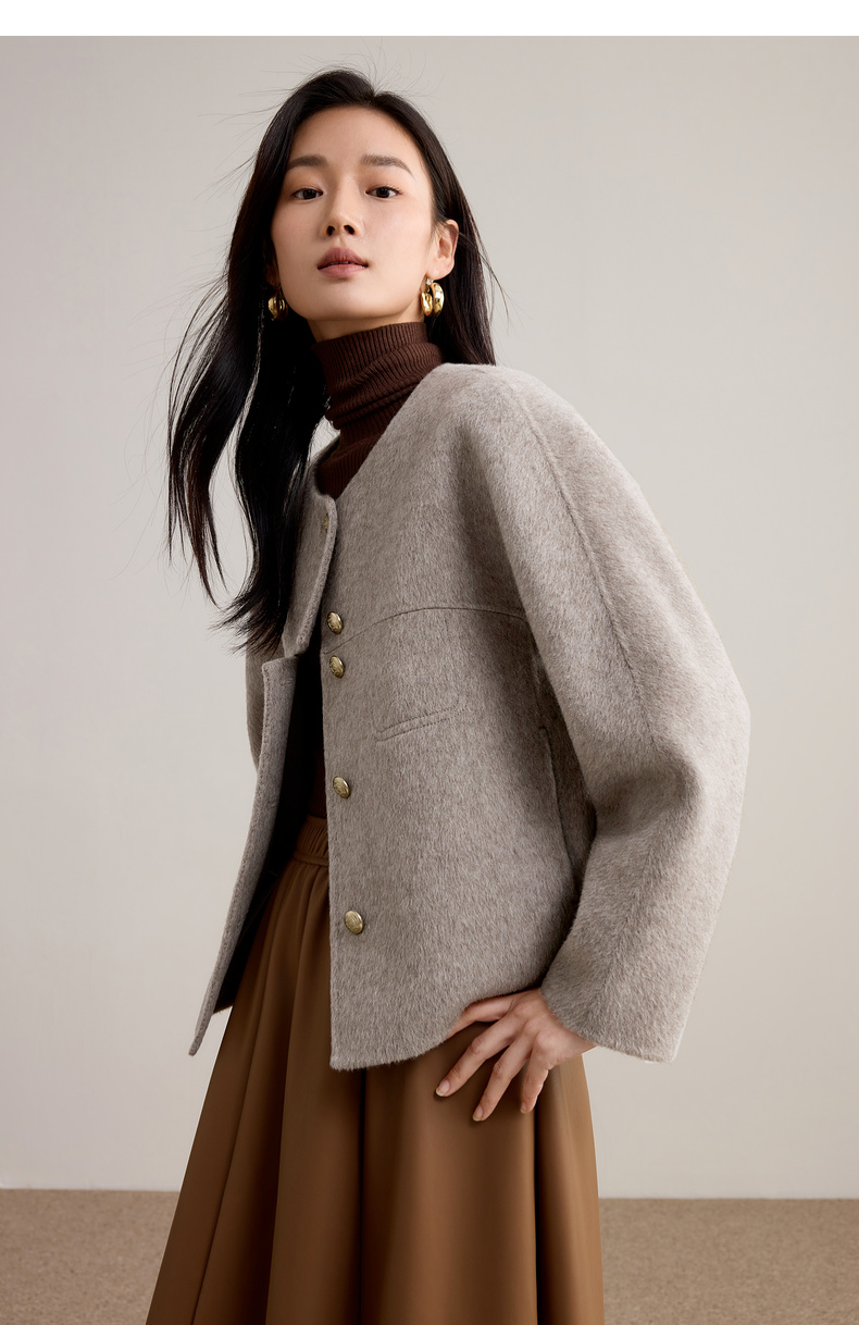 【内购】【100%绵羊毛】900克70支圆领金属扣专机线缝制小个子短外套-W54OF8764