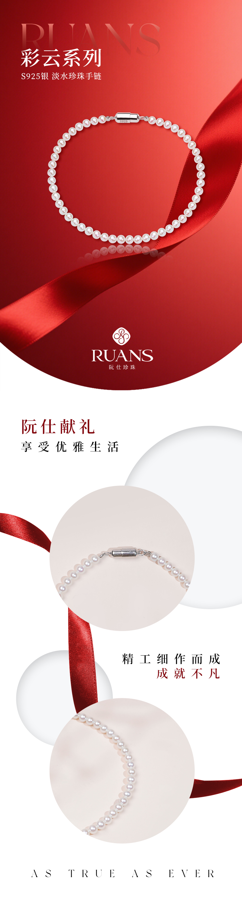 【阮仕珍珠】阮仕彩云系列S925银 淡水珍珠手链 3-4mm