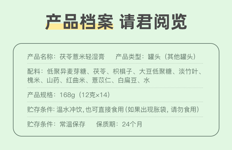 膏别湿态 自在轻盈 茯苓薏米轻湿膏 12g*14条/盒
