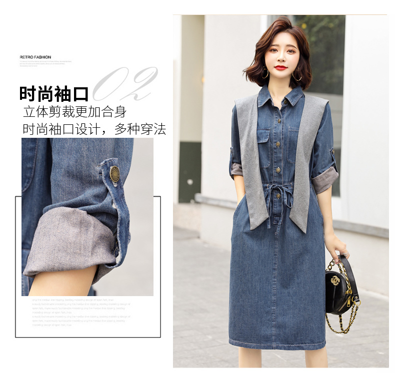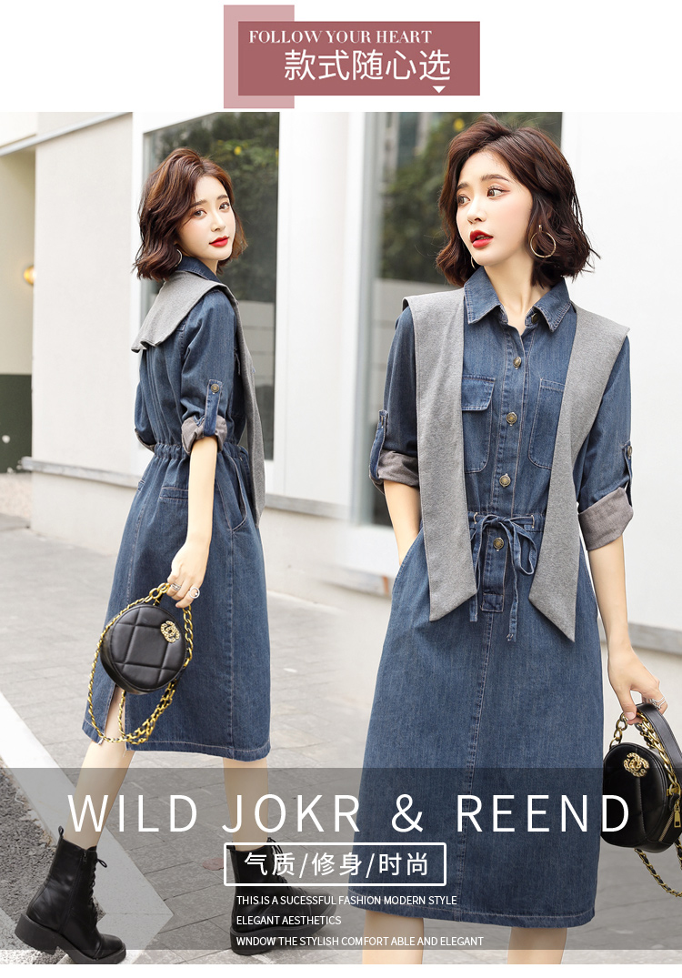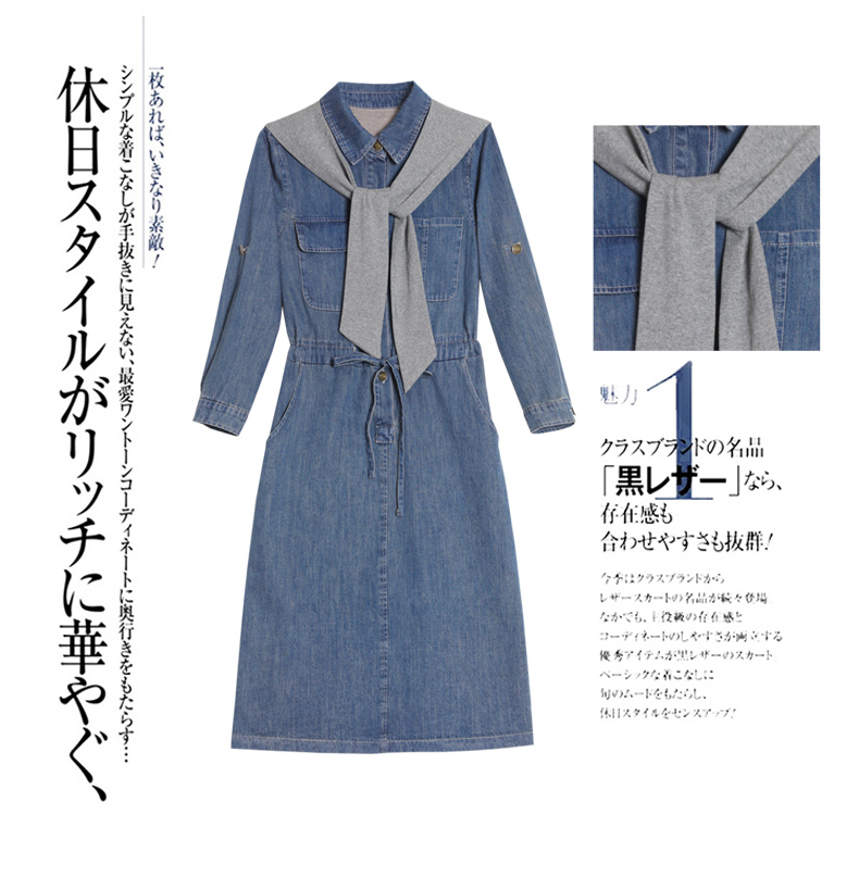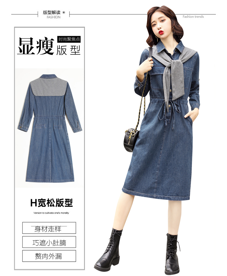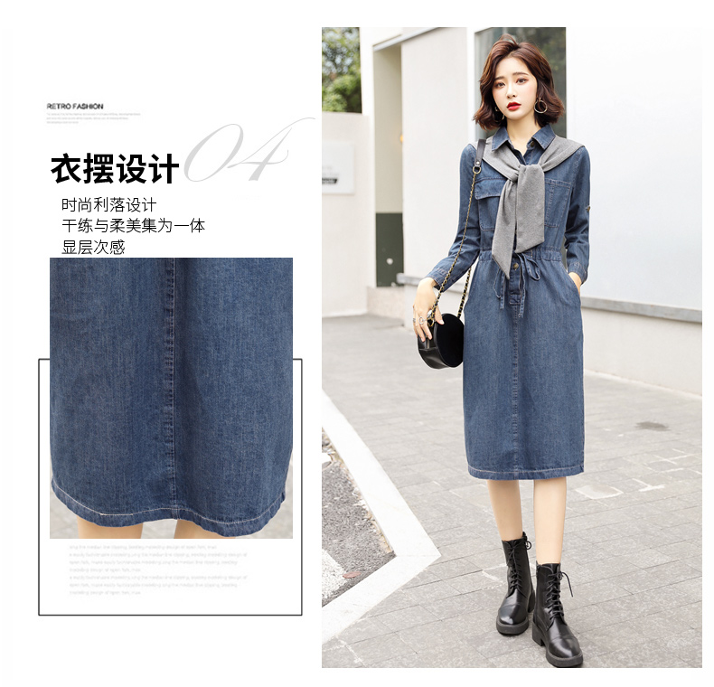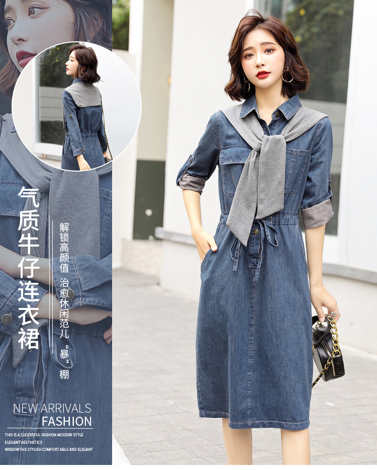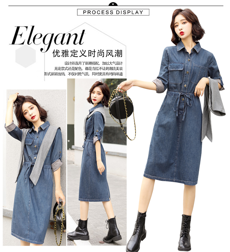 时尚气质,韩版休身显瘦牛仔收腰连衣裙HR-XMYR8092